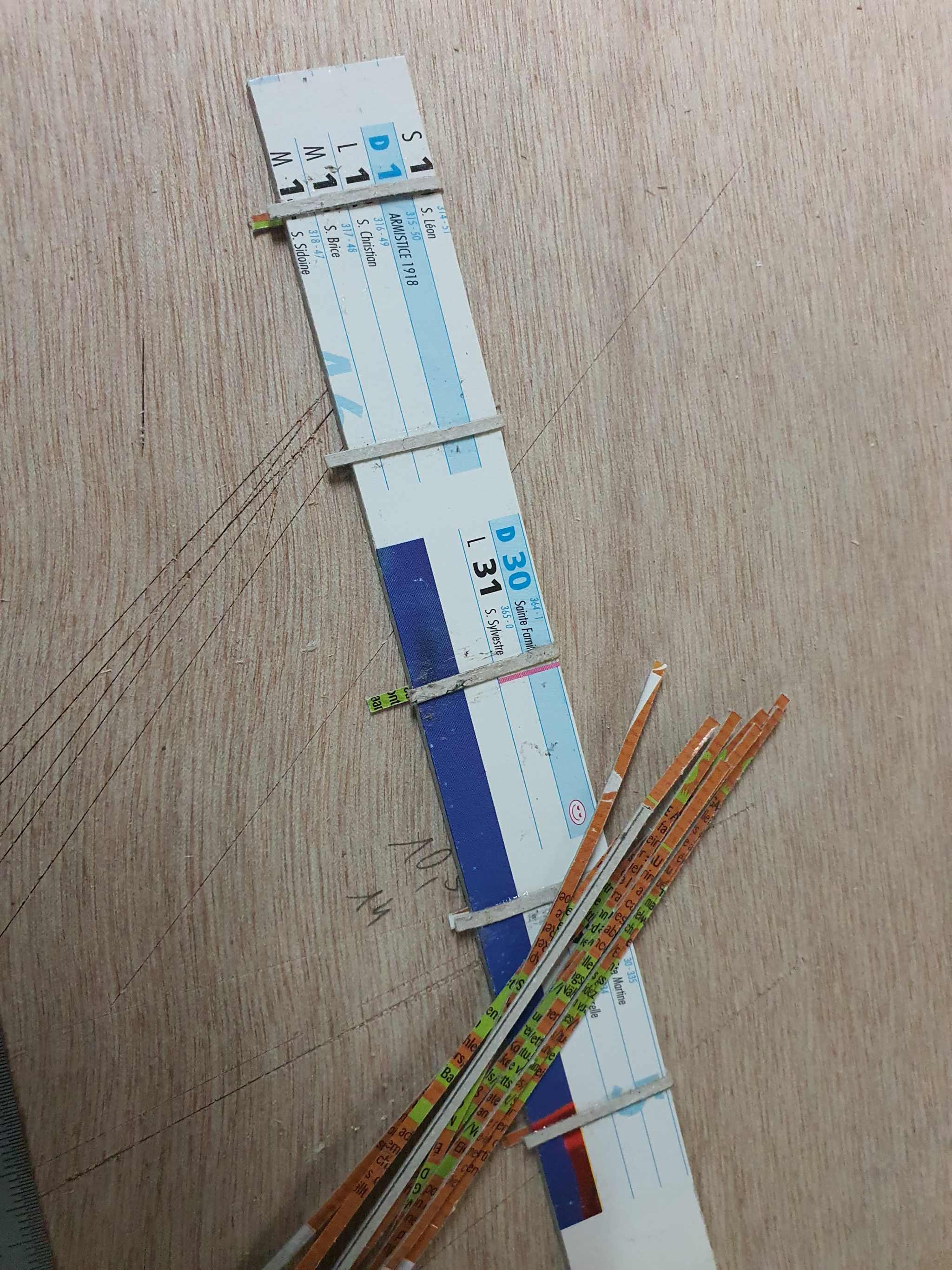 Les bandes de 2mn sont passées de part et d'autres du carton de calendrier puis collées