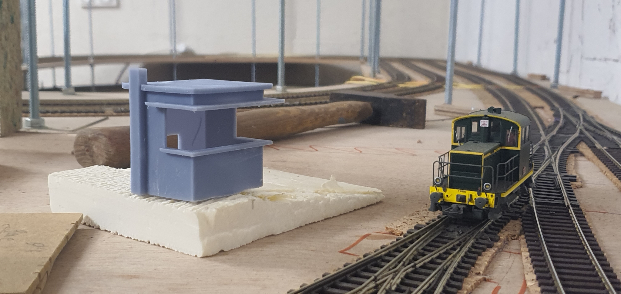 Sinon j'ai testé un poste d'aiguillage en résine 3D. Il est pas top car mes supports étaient trop fin du coup à 80% c'est OK mais 20% sont un peu de biais et pas vraiment droit