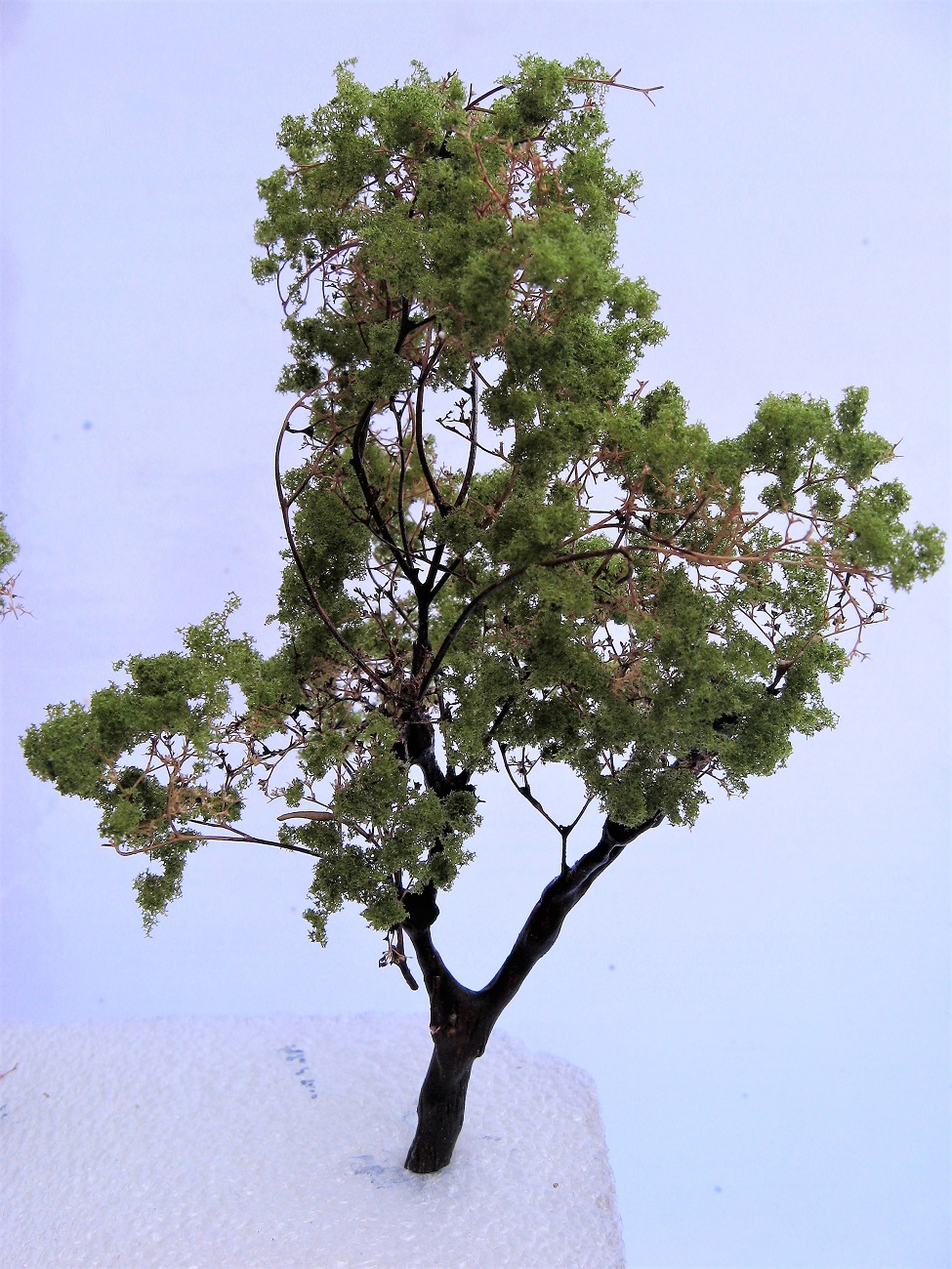 J'ai "renforcé" le feuillage du premier avec du flocage Noch, pas sur le deuxième vu le résultat que j'ai trouvé... moyen.