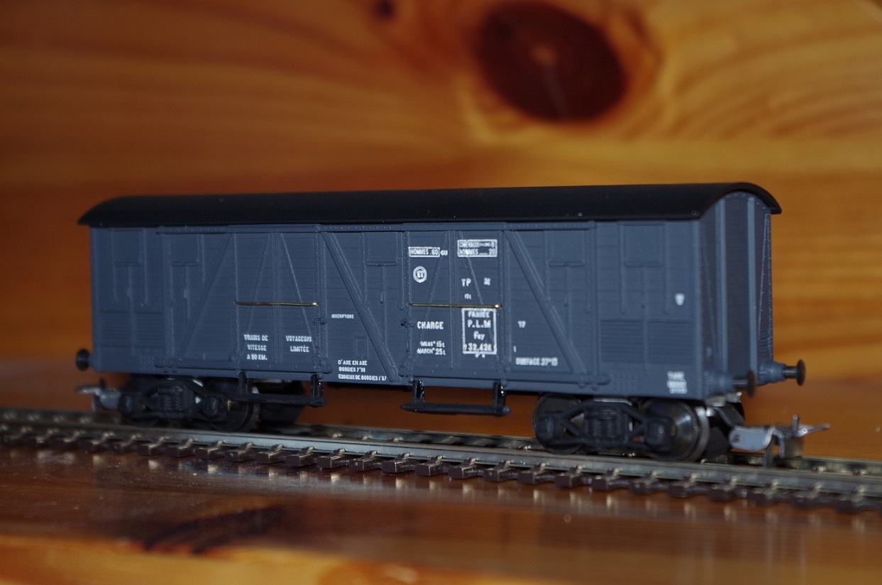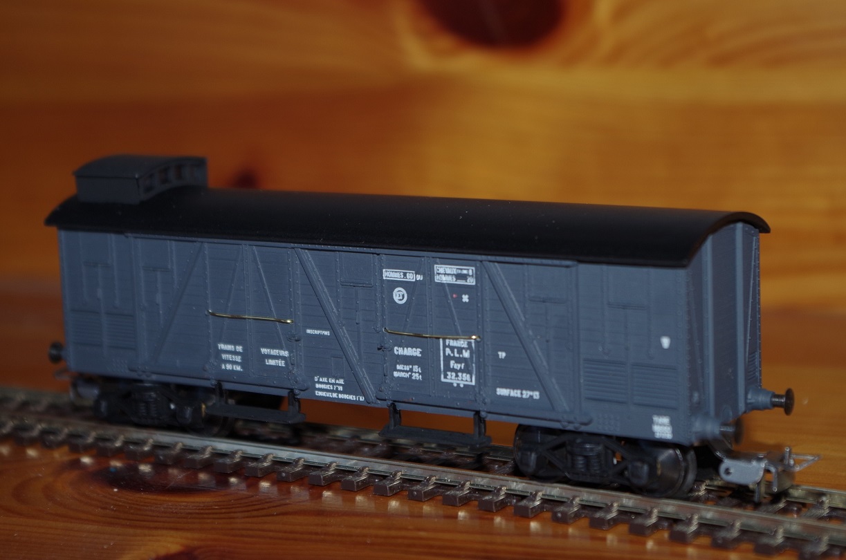 Mes TP couvert 30t sont montés voici quelques photos. Dans l'ordre vous avez le couvert PLM réf 319, le couvert PLM avec guérite réf 320 et 3 photos du wagon de secours VLSD réf 325 auquel j'ai adjoint un éclairage.