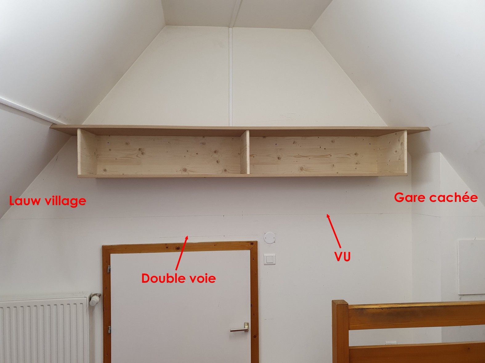 Comme le menuisier avait aussi un chantier, je lui ai demandé de me faire des meubles de rangement pour que je puisse poursuivre l’éclairage du futur réseau. Une fois ce dernier achevé, le peintre viendra me repeindre la pièce en blanc. Il s’occupera aussi du ciel. Je pourrai alors mettre en place mes 2 premiers modules.