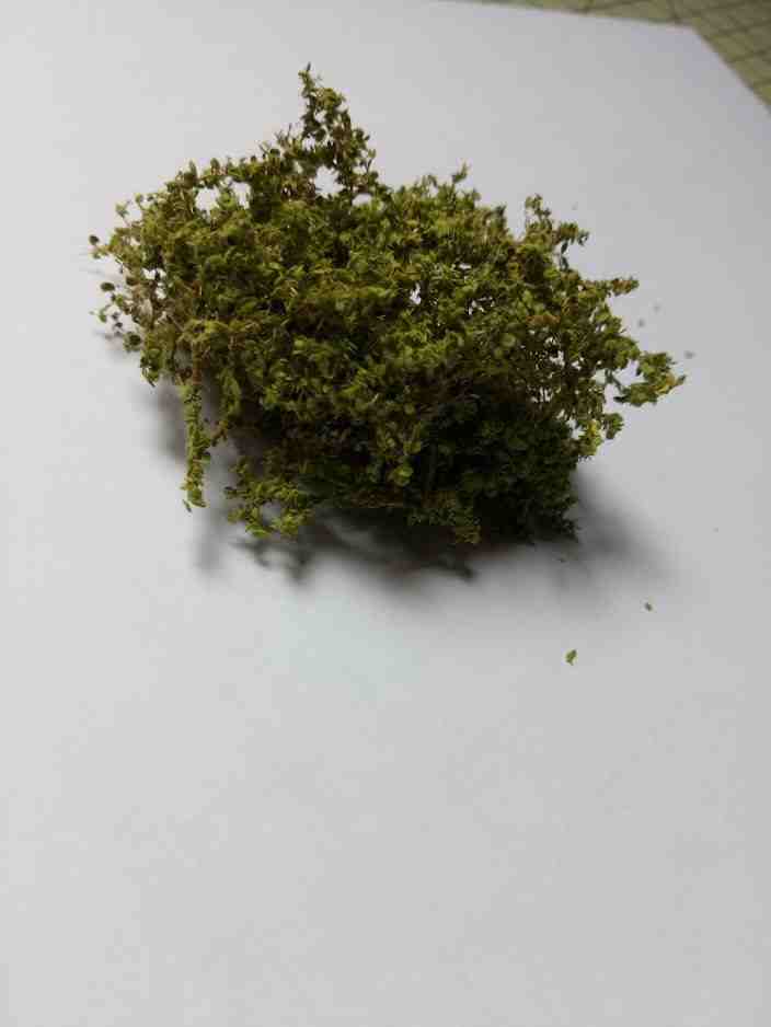 j'avais fait des arbustes , poils de balai en coco peint en vert puis floqué avec de l'herbe 2 mm.