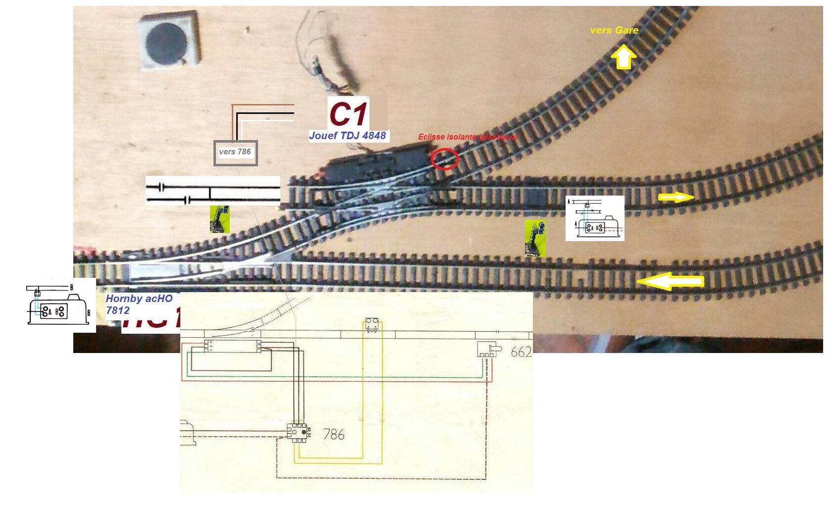 Je m’appuie sur la fig7 du doc « Instructions pour l’emploi des aiguillages Hornby acHO »