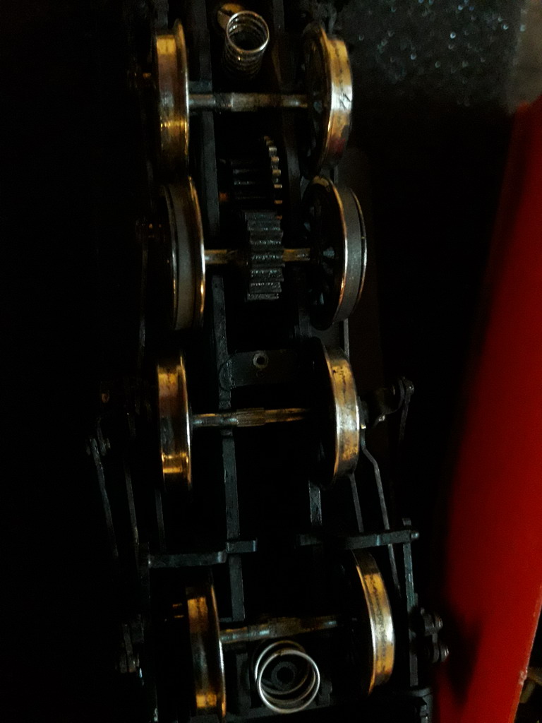 Pour l'engrenage je l'ai déplacé latéralement avec un tournevis et encollé avec de la cyano. La traction sera limitée au train de secours ou de courtes rames car en pleine charge cela ne tient pas .