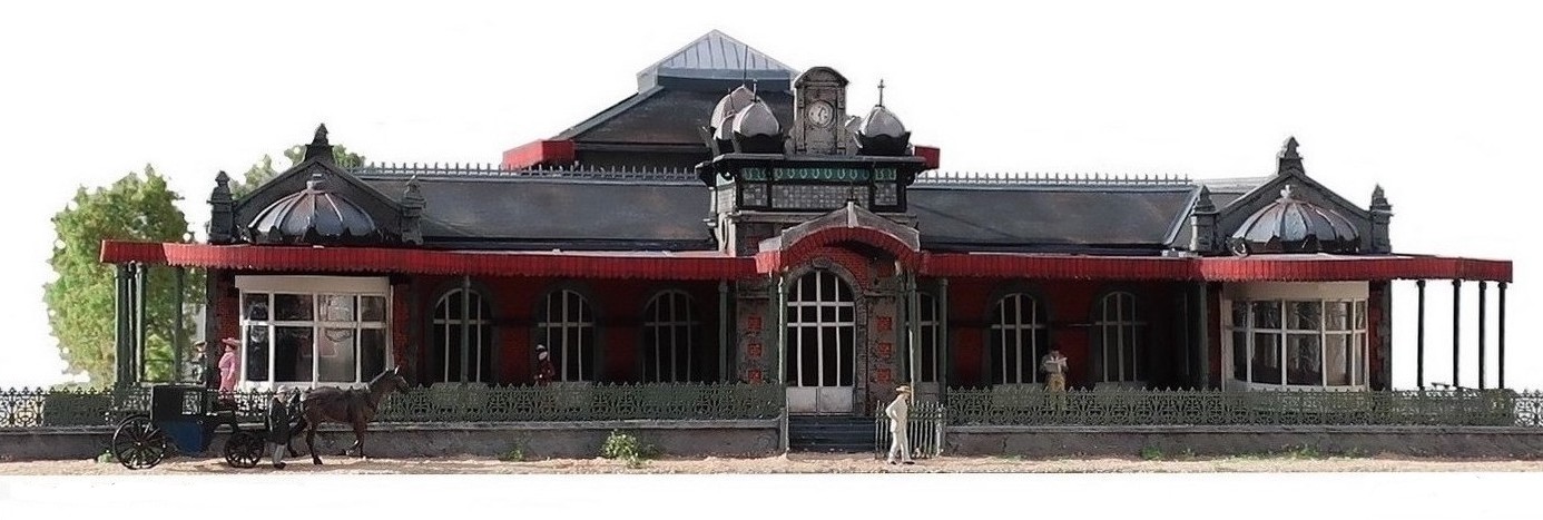 Etant vendéen, j'ai voulu réalisé un monument de ce département, le grand casino des Sables d'Olonne. Il a été construit en 1876 pour la compagnie des chemins de fer de la Vendée et malheureusement détruit vers 1950. La maquette est réalisé en carton et papier avec des éléments en laiton comme la grille qui est le modèle de l'originale. Un tramway partait de la gare et rejoignait le casino au début du XXème siècle :
