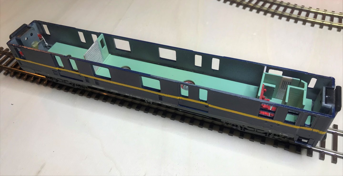 Première phase : démontage des chasse-pierres, des attelages, des supports des conduites (plus facile pour travailler) et des tampons, mise en peinture des conduites. On choisit aussi le coté que l'on souhaite superdétailler.