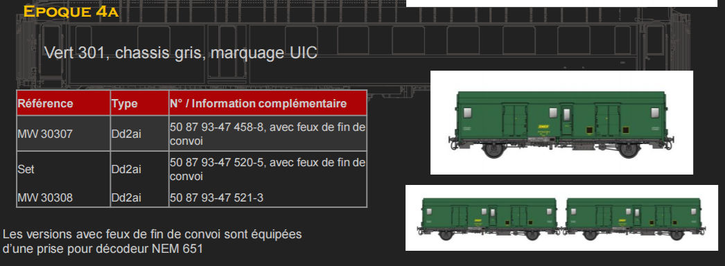 L.S.Models et EPM annoncent pour la fin du moi de mai (2020 ... ) la sortie des fourgons voyageurs à deux essieux Dqd2m, en versions époques III à IV. Ces fourgons seront livrés soit seuls, soit en coffret de 2 unités, en majorité équipés de feux de fin de convoi.