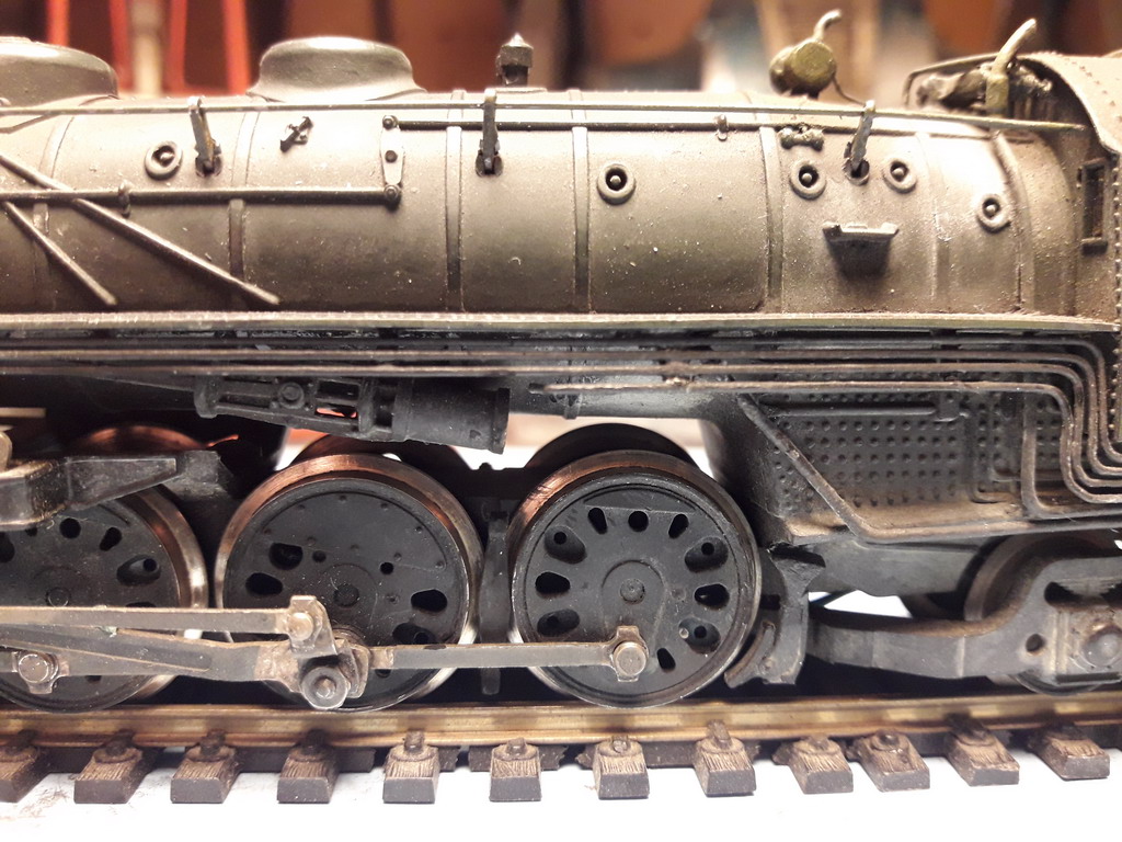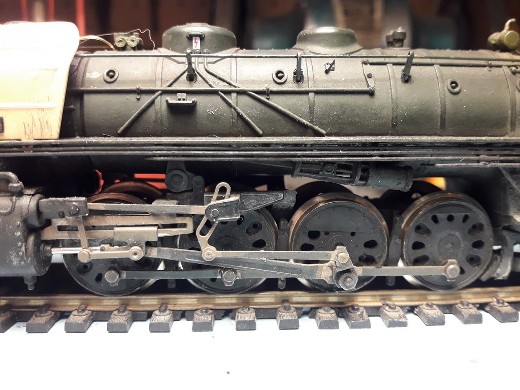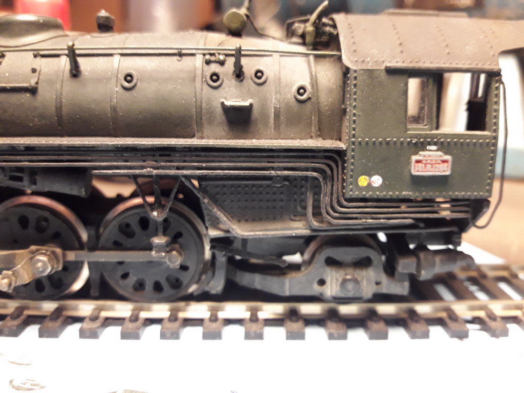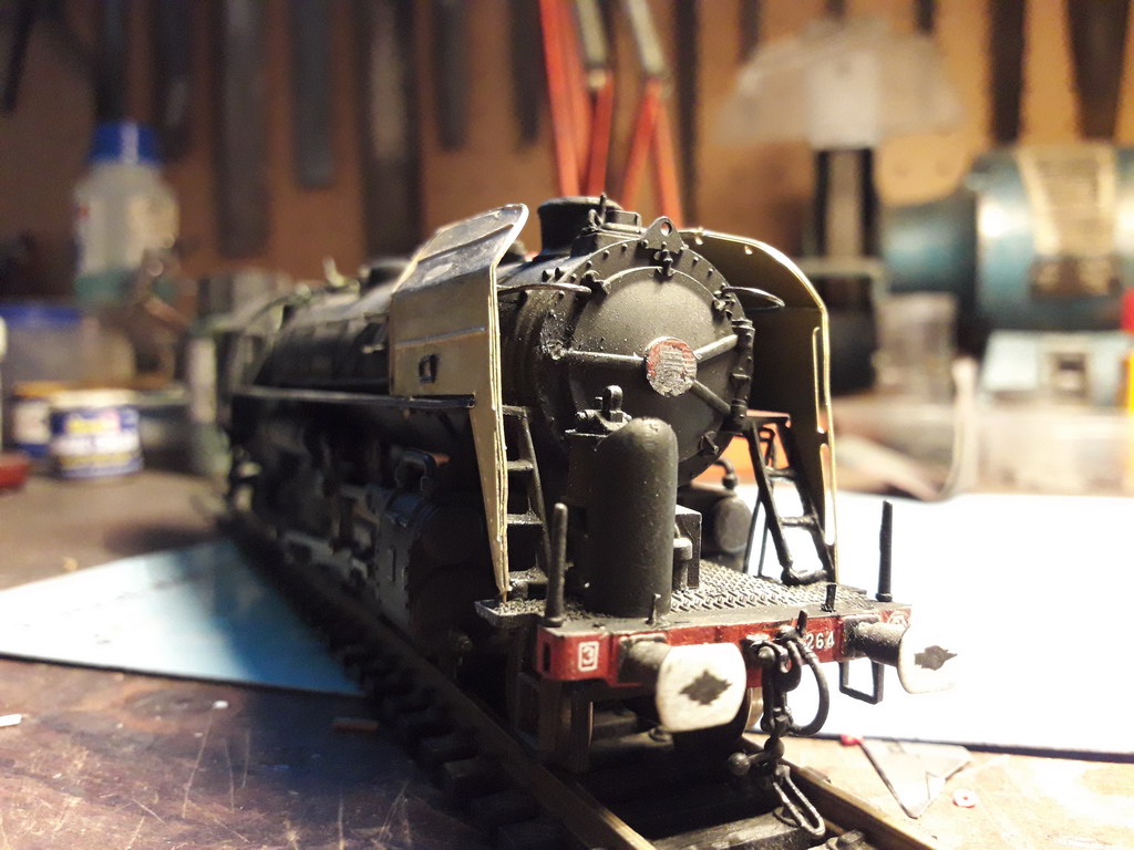 Il y a une grosse tubulure qui ne figure pas devant, partant de la boite à fumée et passant à travers le platelage de la traverse avant. Elle se voit de trop. HJ ne l'a pas représenté non plus ???