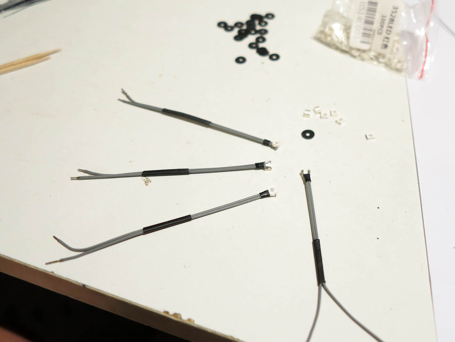 Je soude une diode rouge cms, de type 3528. J'ai ajouté une résistance de 1 K Ohms en série, sous le réseau (470 Ohms pour feux progressifs).