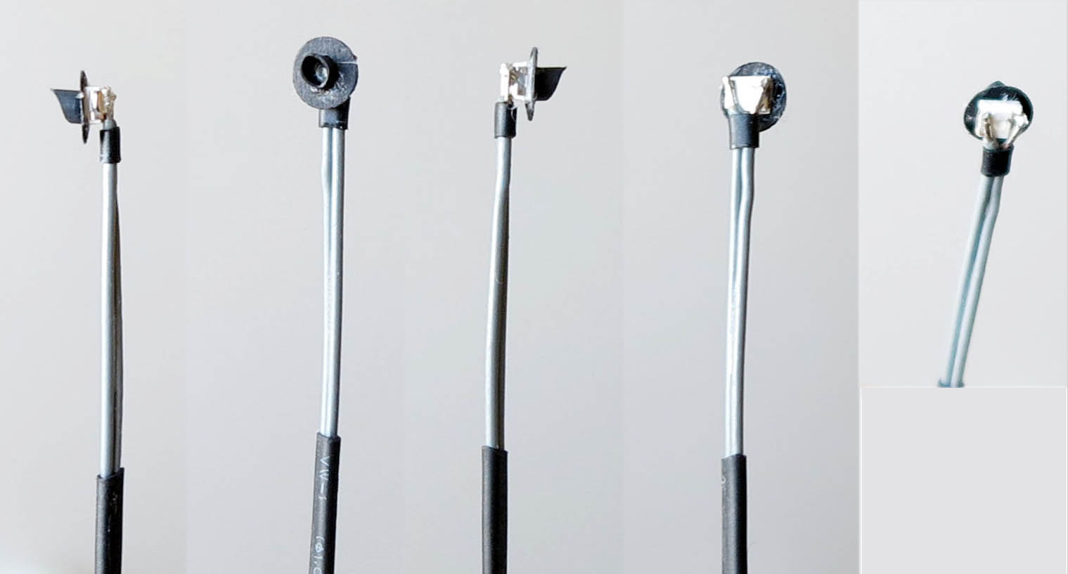 . Découper des bouts de 4 mm de gaine thermo rétractable rouge et blanche