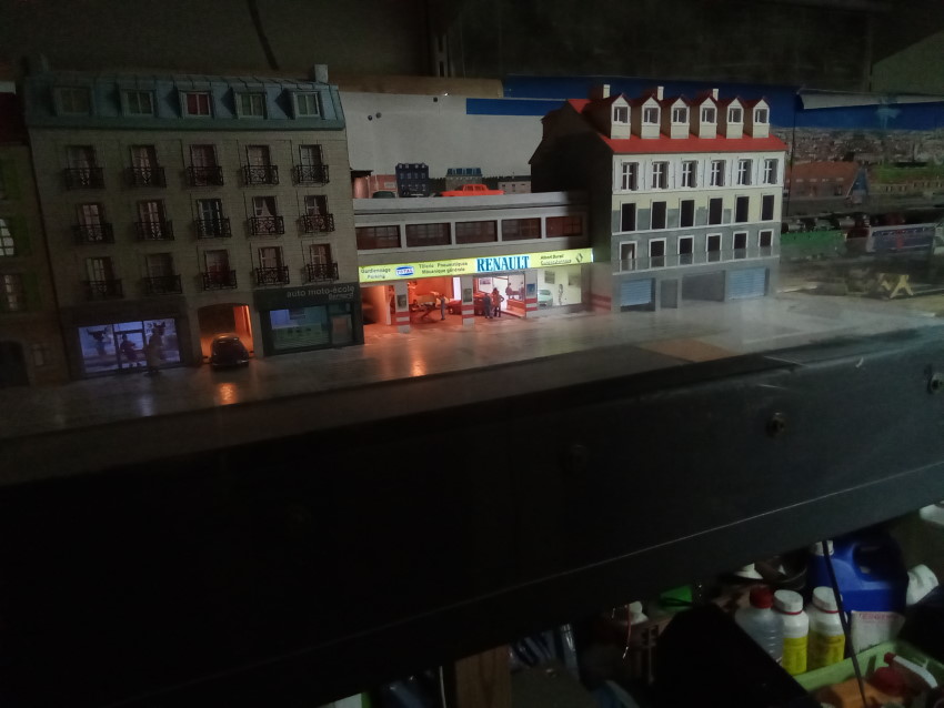 Une autre image du garage Renaut éclairée. Cependant j'ai des soucis avec l'enseigne. J'ai utilisé le produit proposé par Région en Compagnie mais la plaque lumineuse se détériore rapidement. Si quelqu'un a l'expérience de ce produit ce serait bien de confronter nos expériences.