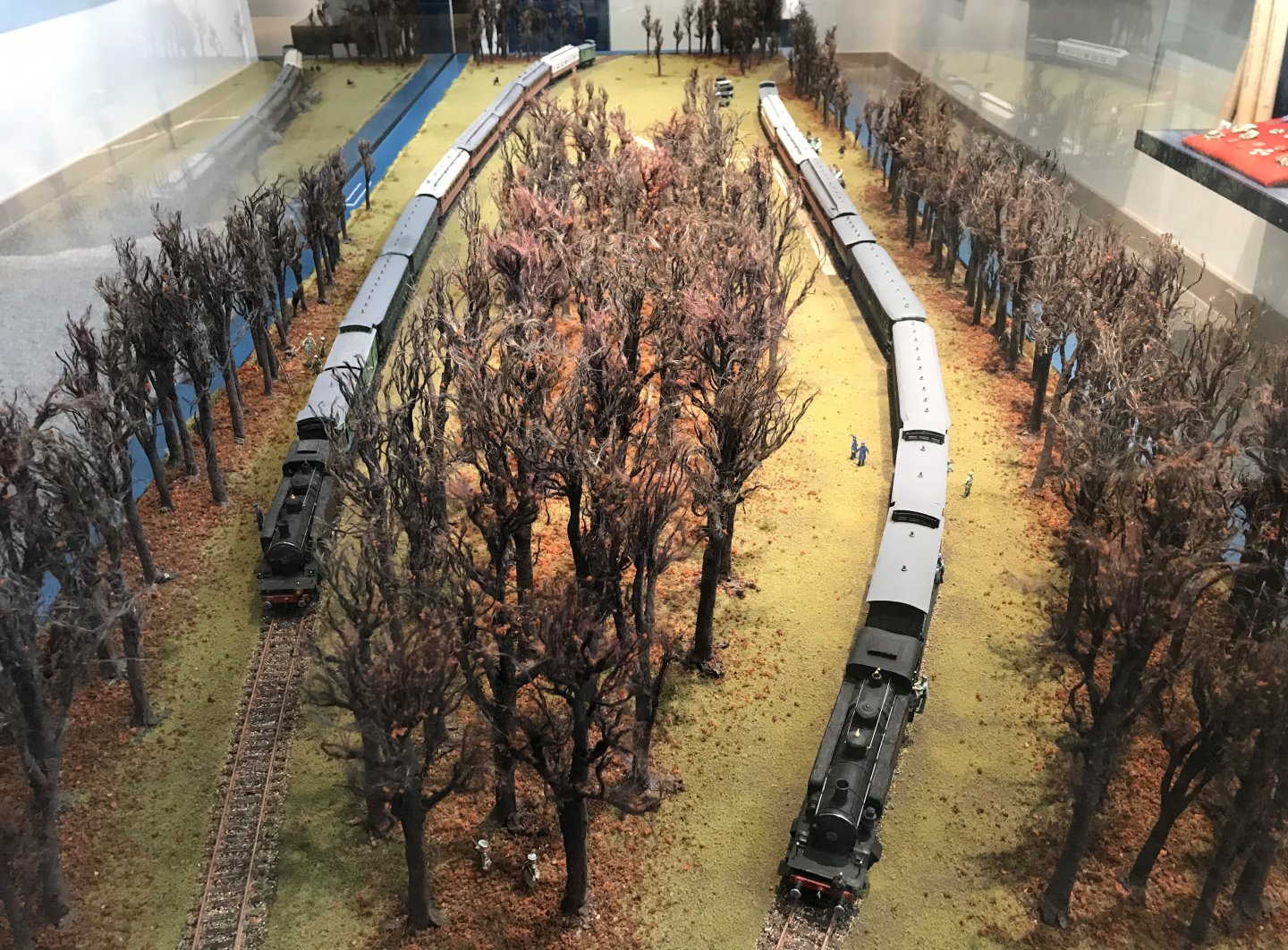 Un autre train est stationné sur un autre épi destiné à accueillir les émissaires allemands pour la reddition que l'on est allé chercher en voiture sur la ligne de front. Pour aller vers le train français , les allemands cheminent à travers la forêt sur un caillebotis de bois.