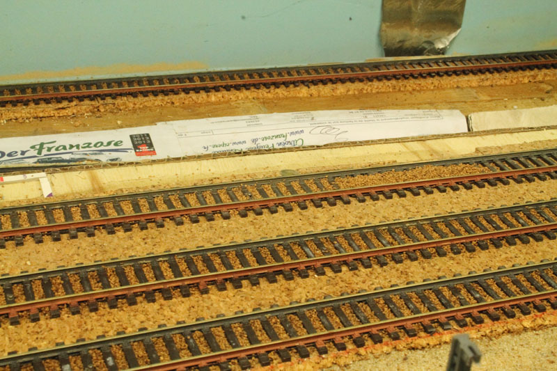 vue d'ensemble, le ballastage est presque fini, l’emplacement des poteaux caténaires quasi définitif. (la cave est pleine)