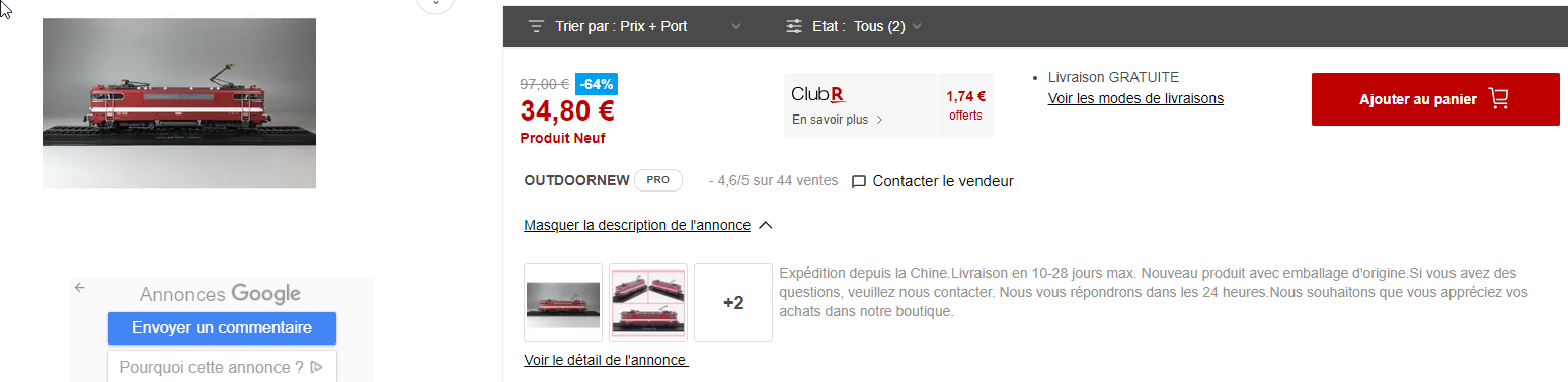 Mon conseil est de se tenir très loin de ces sites !! Pourquoi : j'ai testé sur une somme minuscule un wagon Roco et sur une carte dédiée à mes achat Internet. Bien évidemment , pas de marchandise arrivée à ce jour mais par contre 6 tentatives d'achat de biens de consommation en Iowa au moment de Noël ! L'authentification via un numéro de téléphone m'a bien protégé !!