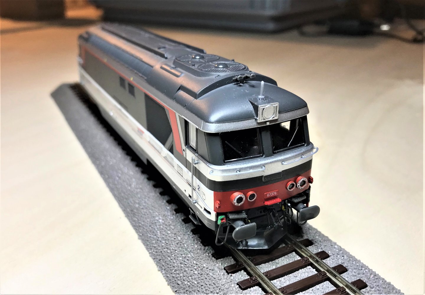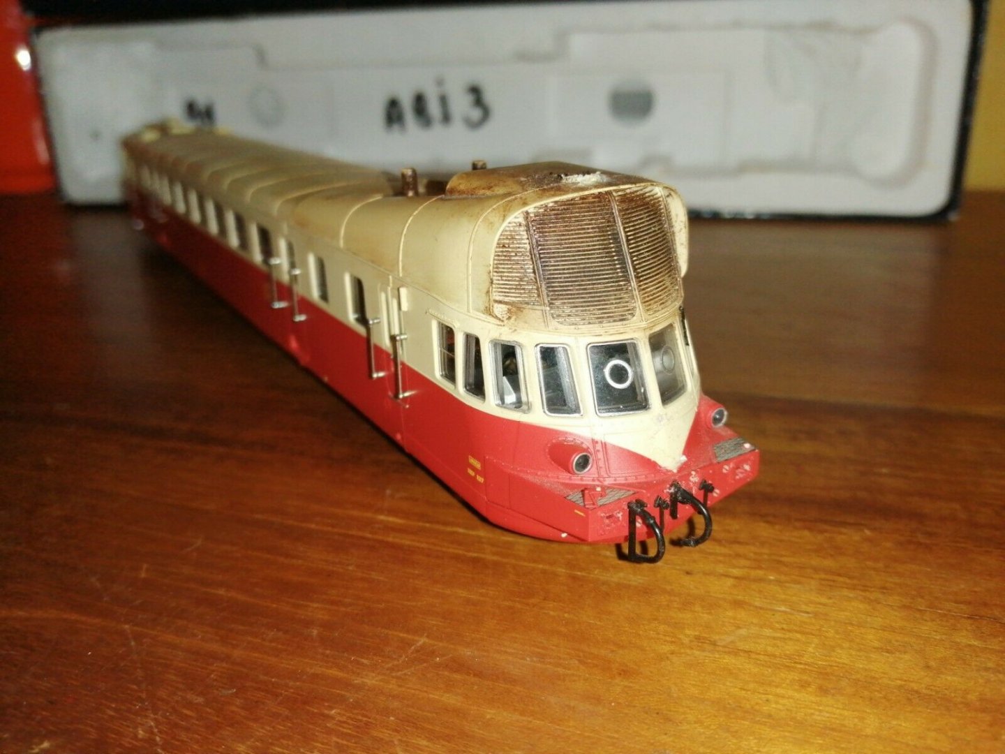 Sa sœur en bleu (BB 67373) est sur la table d'opération. Là c'est plus complexe puisque j'ai acheté la caisse nue sur EB que j'adapte sur un châssis vendu lui aussi de son coté. J'attaque la décoration .