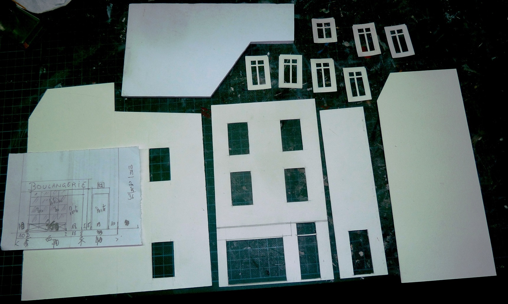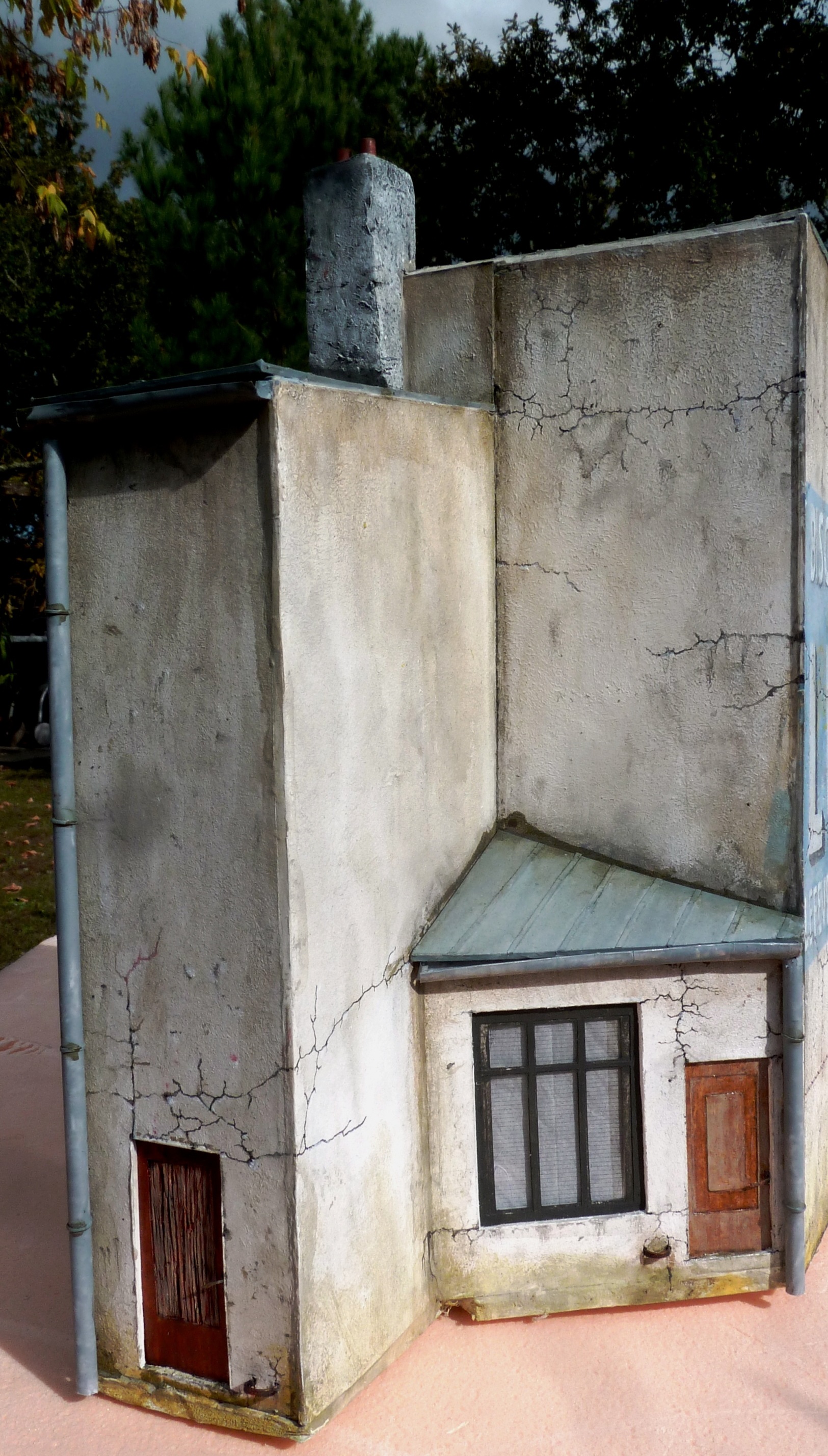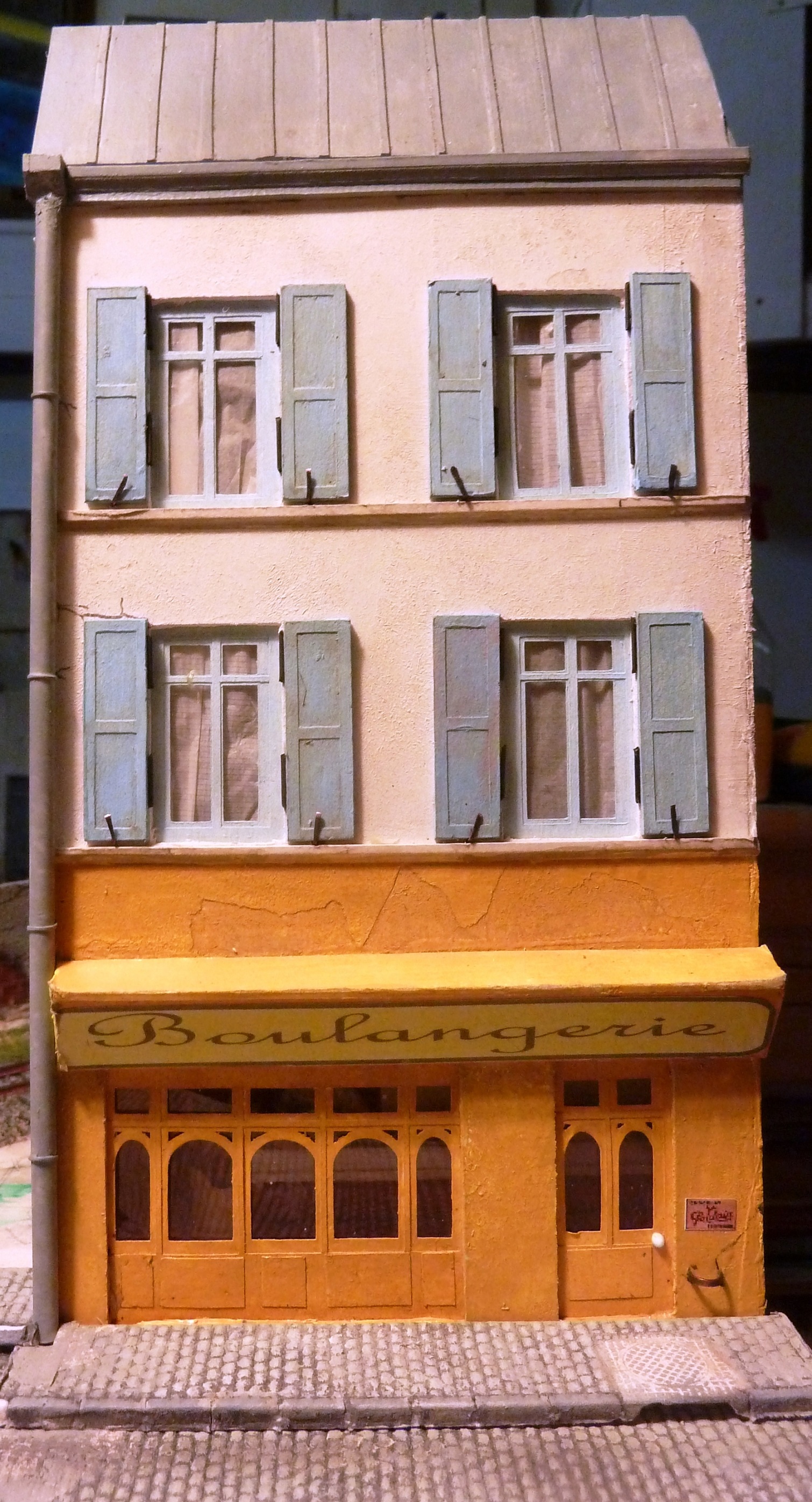 Un bâtiment façon magasin d’on ne sait quoi. Pas de détail de construction, il est fermé. C’est du forex de 5mm. Les portes sont en balsa.