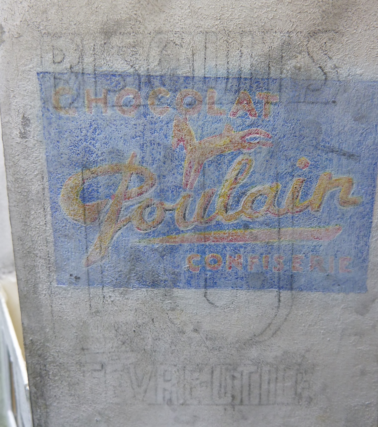 Deux murs de la boulangerie ont des pubs murales peintes.