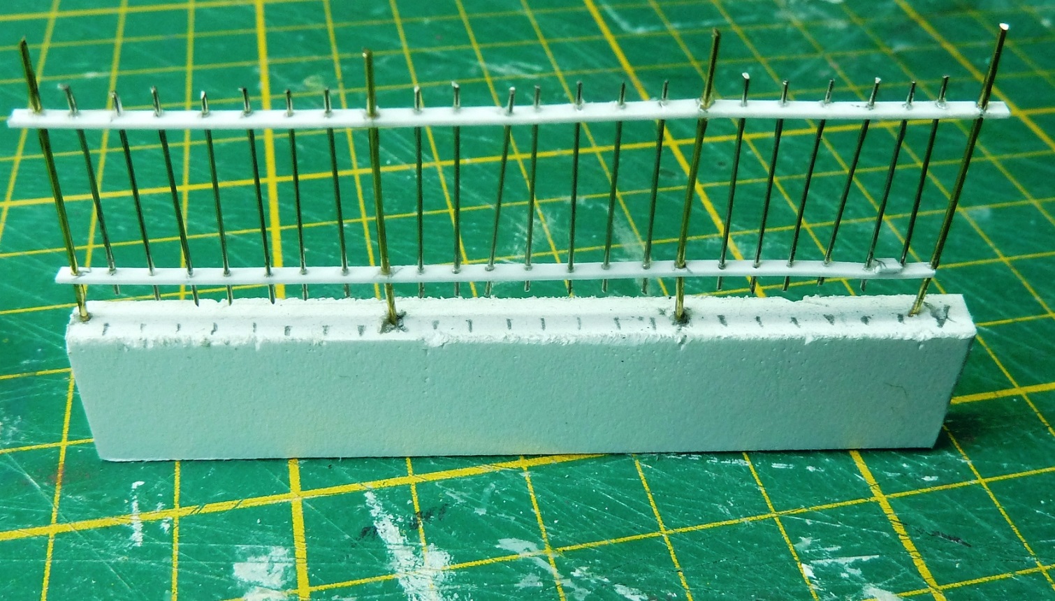 L’abri à brol est en evergreen, toit en PQ sncf sur un carton fin, adossé à un muret de briques gravées dans du dépron de 3mm et des chevrons en balsa gratté.