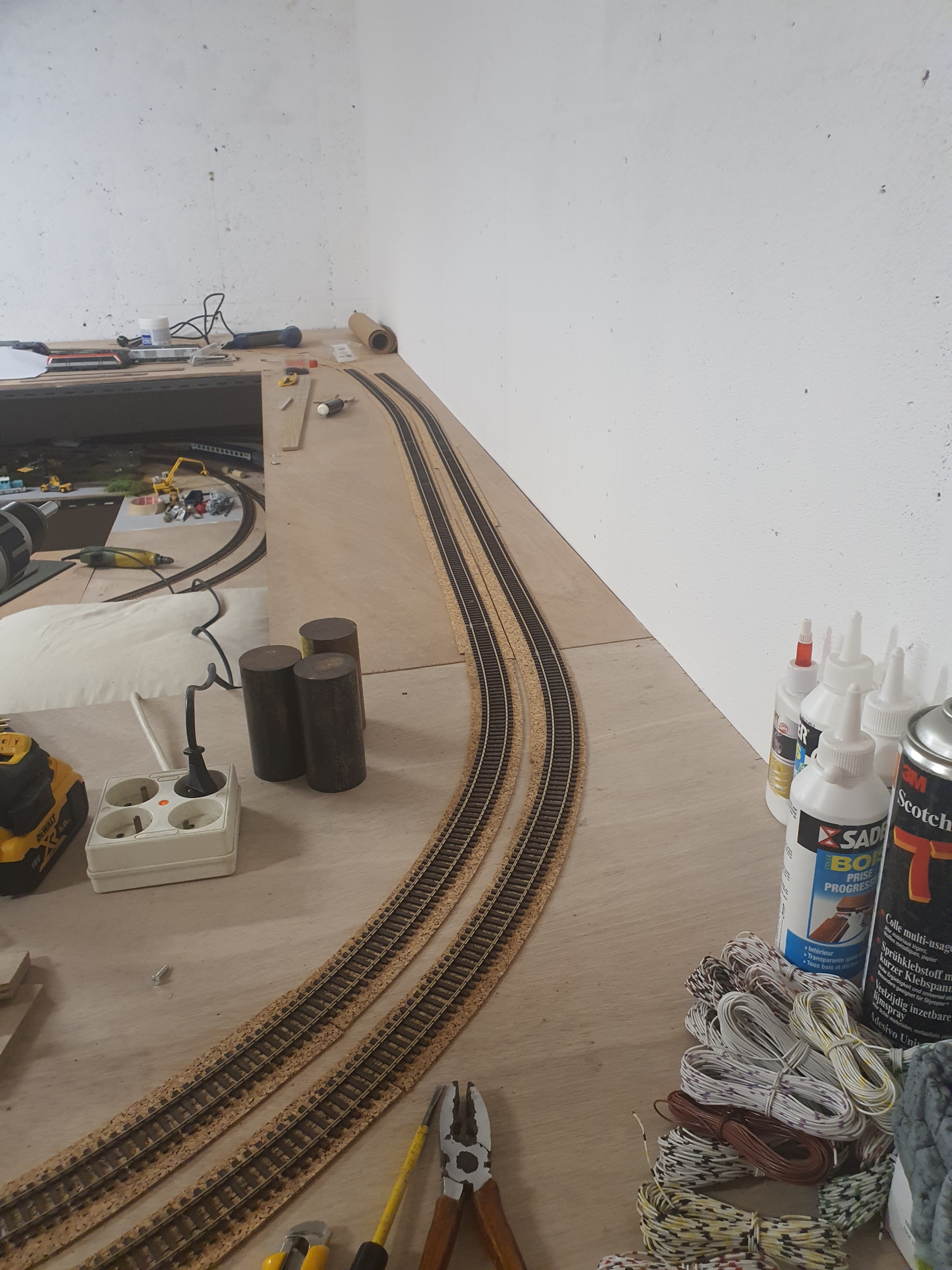 Alors 6m de liège et 4 mètre de rails ce soir de posé après le boulot.