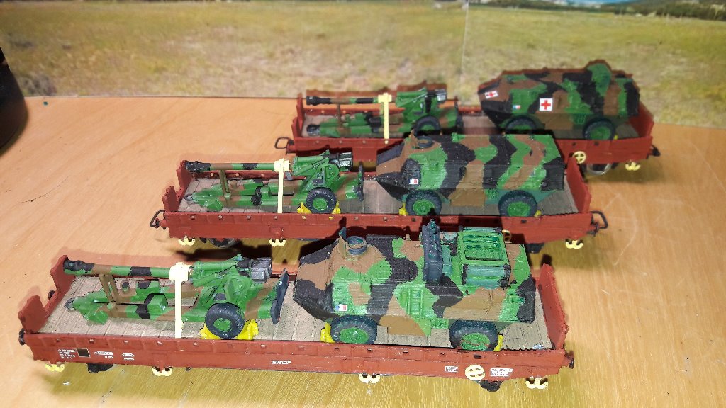 En ce qui concerne le matériel, la conformité (formes et taille) est garantie, par contre pour les wagons il s'agit d'une création "a ma guise" en partant de photos vues sur le net. De même je vous demande d'être "indulgent" avec les fixation du matériel qui est tout à fait empirique.