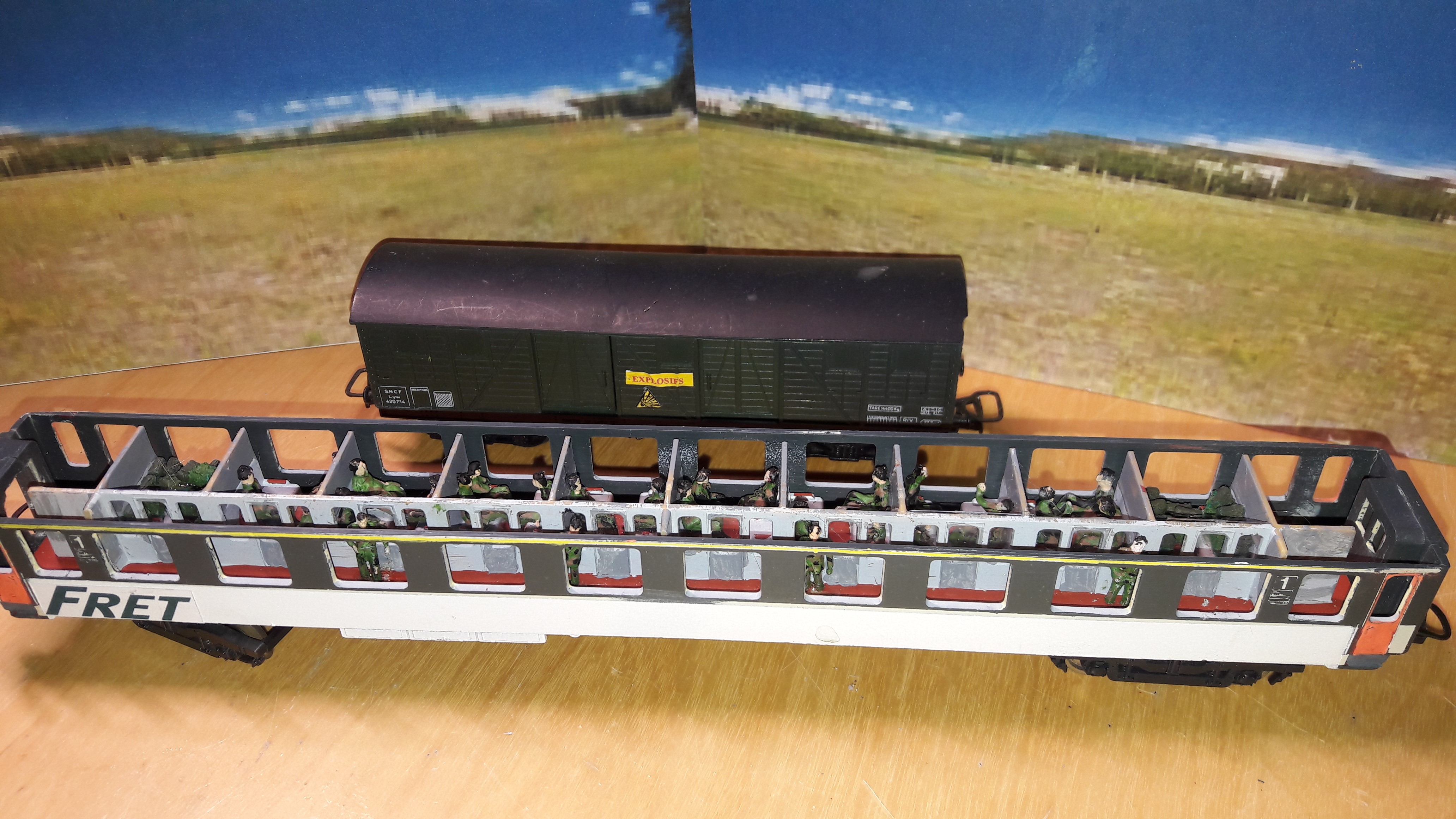 Il reste encore pas mal de travail de finition, correction de peinture, fixation de certains véhicules,marquage des véhicules et wagon, éclairage de la partie voyageur. Dès que c'est fait je fait une belle vidéo derrière une 66000 de FRET sncf