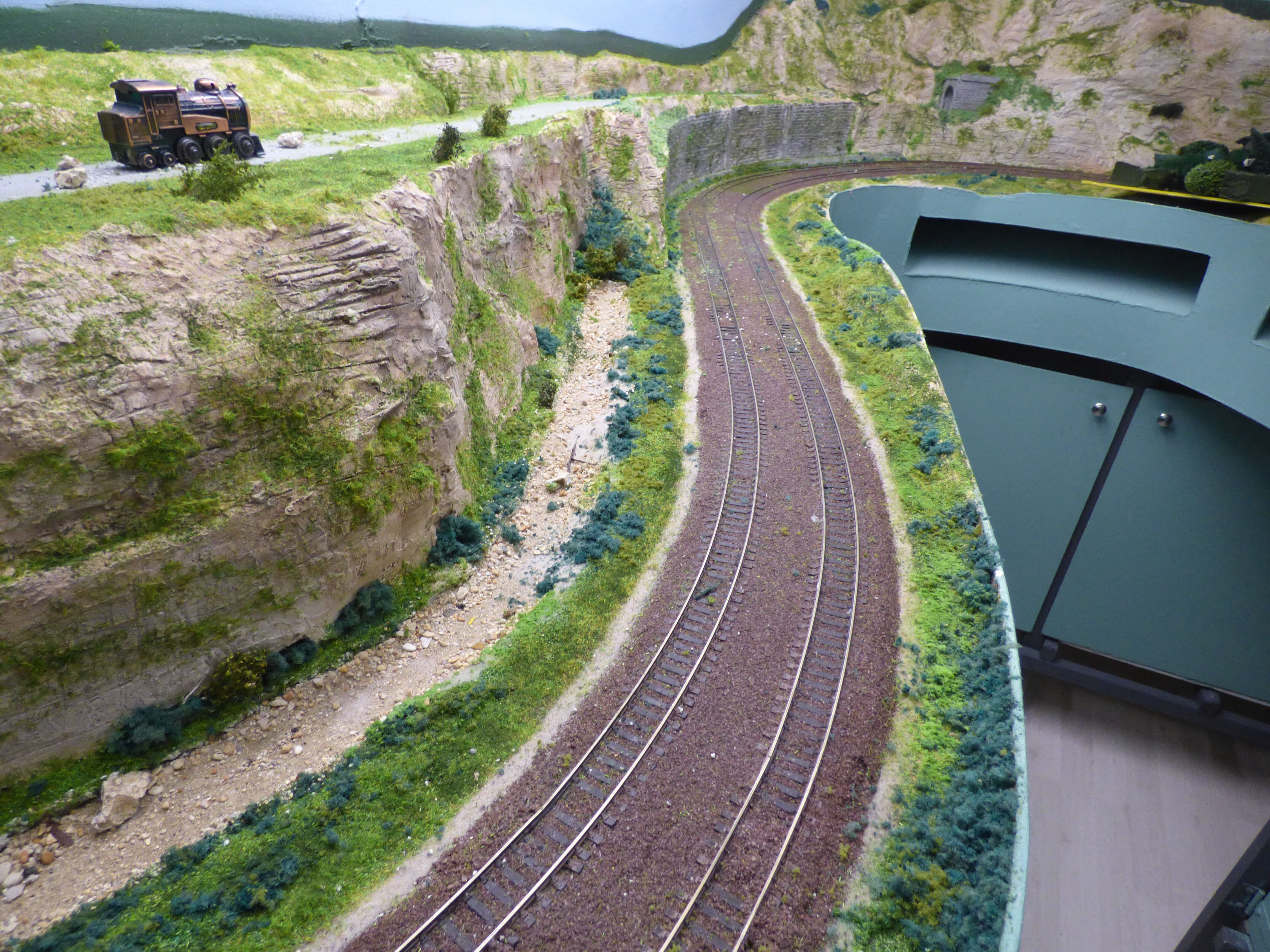J'ai terminé la pose des herbages . Reste encore les buissons et les arbres à poser . Il faut aussi que je finisse le village , la gare et ses quais et enfin la riviere . Je suis plutot satisfait du résultat , meme si la végétation m'apparait trop vive . J'aurai préféré des tons plus foncés , mais comme on m'a offert les boites de flocages je ne vais pas jouer les difficiles .