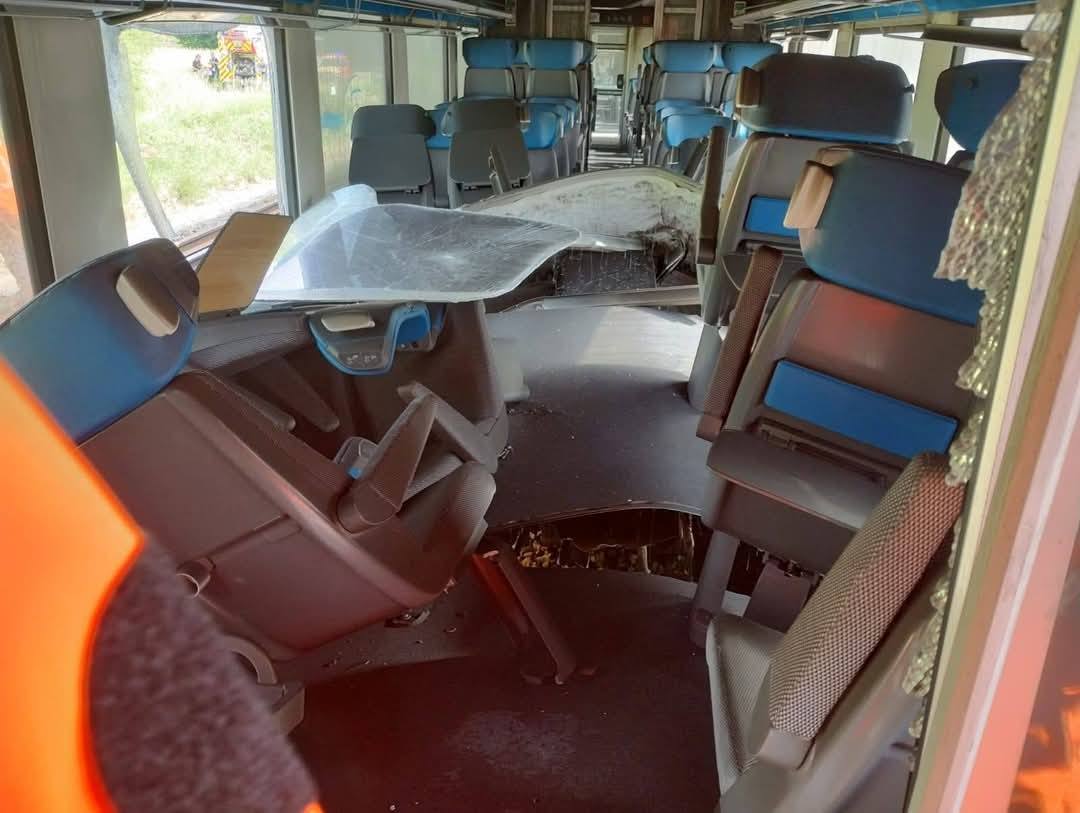 Incident sur un TER en gare de Laon ce vendredi 30 mai 2025, provoquant un départ de feu dans la locomotive. Le TER a percuté un godet de pelleteuse.
