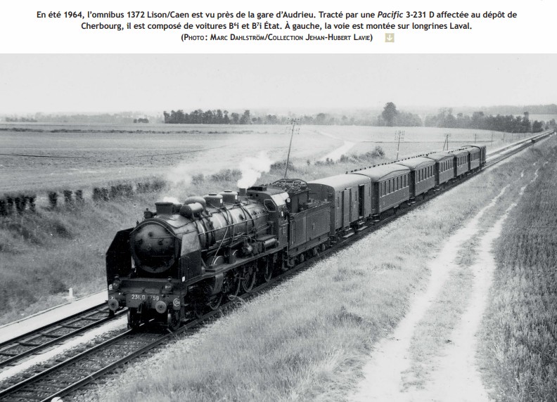 La locomotive à vapeur est une 231 G ex Ouest Etat avec échappement double. On voit le décochement du tablier qui dégage la distribution à soupapes Dabeg. Le plan de voie actuel est plus rectiligne. Il semblerait que la photo soit plutôt prise à l'embranchement qui lui est en courbe pour les besoins du film sur la ligne de Lisieux à Deauville en gare de Lisieux. La halle à marchandise est à la droite du train qui se dirige vers Deauville et l'immeuble se trouve à gauche masquant la ligne vers Cherbourg . A cette époque la ligne pour Deauville était à double voie.