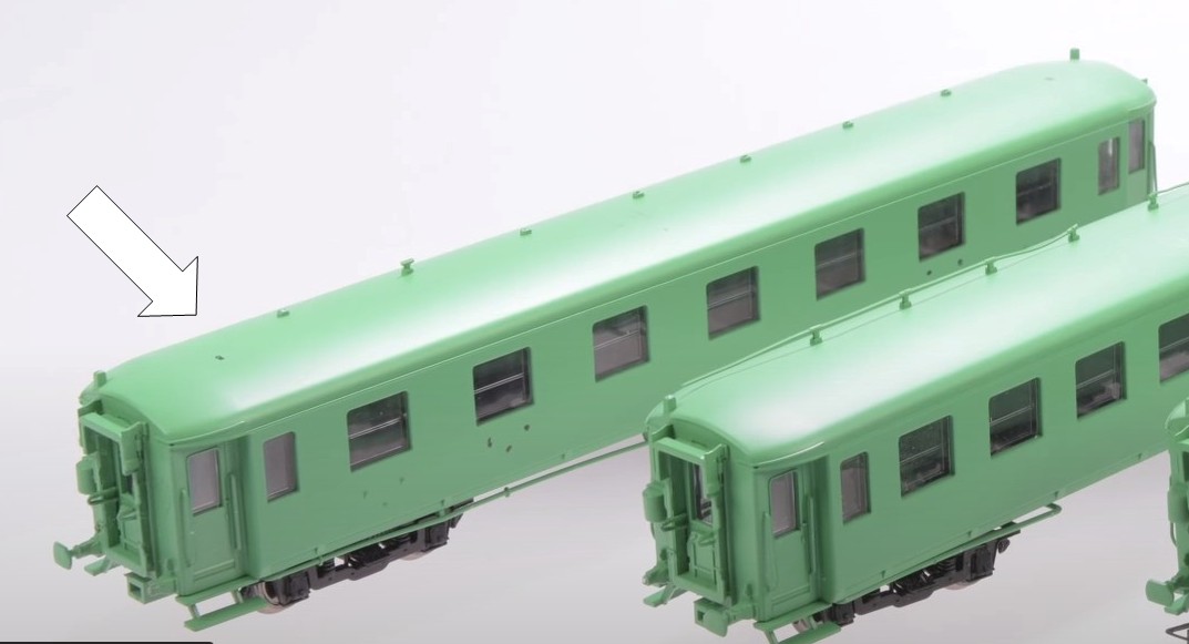 Les voitures sont des ex Etat métallisées à deux essieux et à intercirculation pour trains express non reproduites en HO.