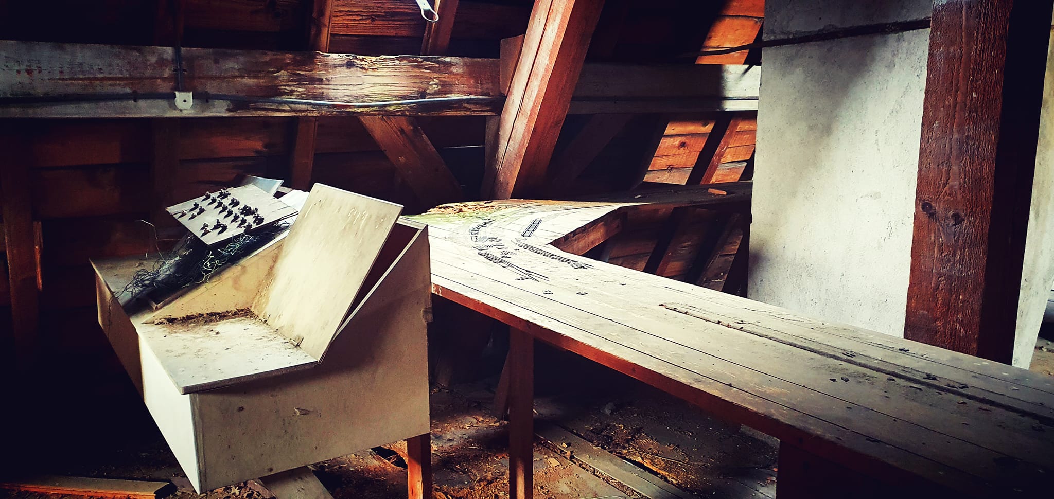 J'ai vu la vidéo de ce lieu sur internet. Le circuit est sur de simples planches et à l'étroit dans ce grenier.
