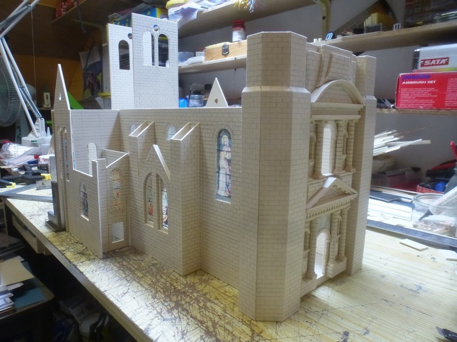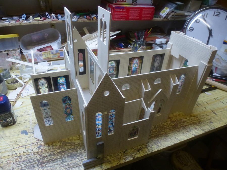 dimensions de l'église construite suivant la place disponible (toiture du local en pente