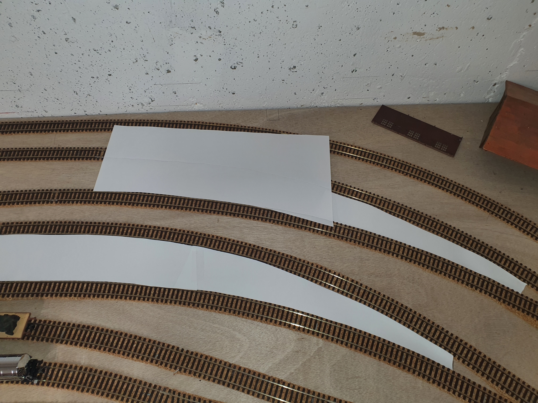 Alors j'ai mis des feuilles et je vais faire circuler un wagon pour tracer le débord que je pense être au maxi