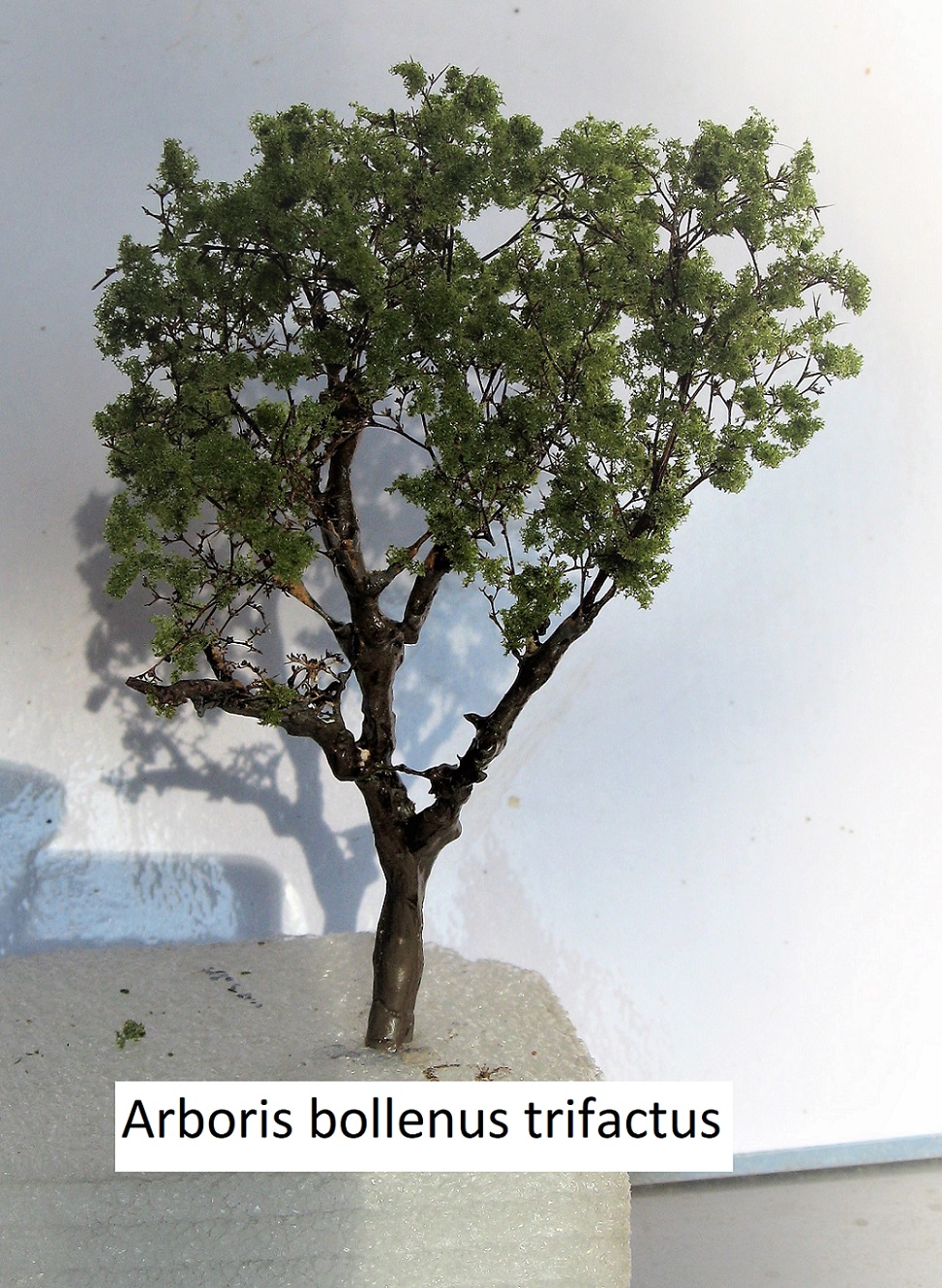 Suite à une discussion à Sedan avec une modéliste qui réalise de très jolis arbres (Gaëlle, encore merci pour ton accueil et tes conseils), j'épaissis mes troncs en les emplâtrant avec un mélange d'enduit à reboucher (pas à lisser) en poudre additionné de colle à bois, en diluant avec un peu d'eau si besoin.