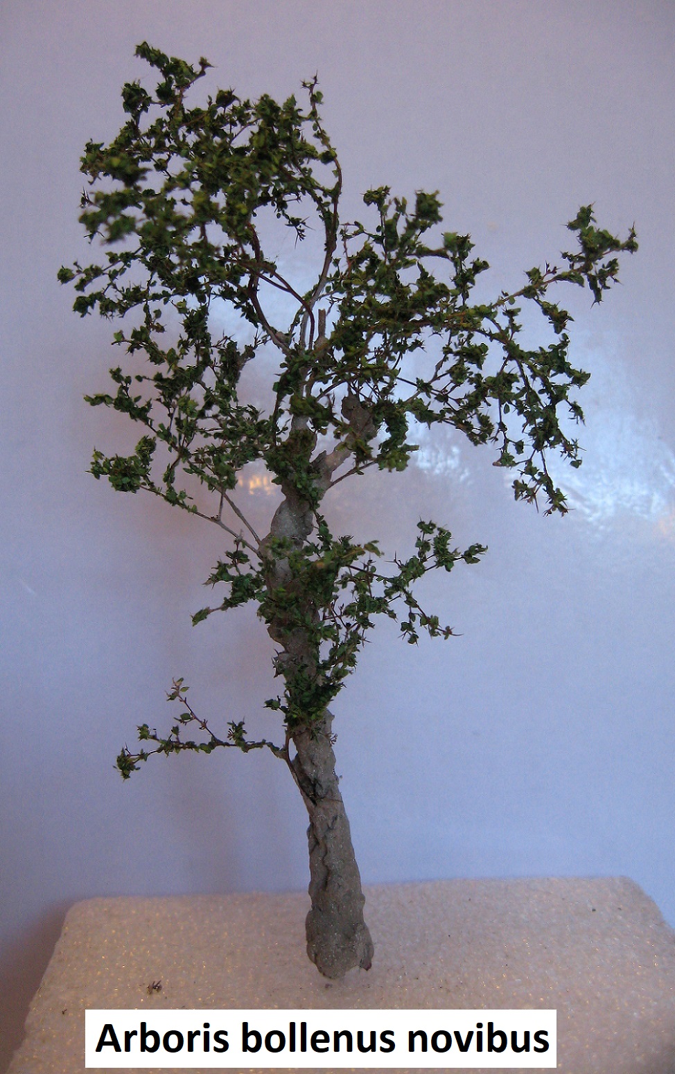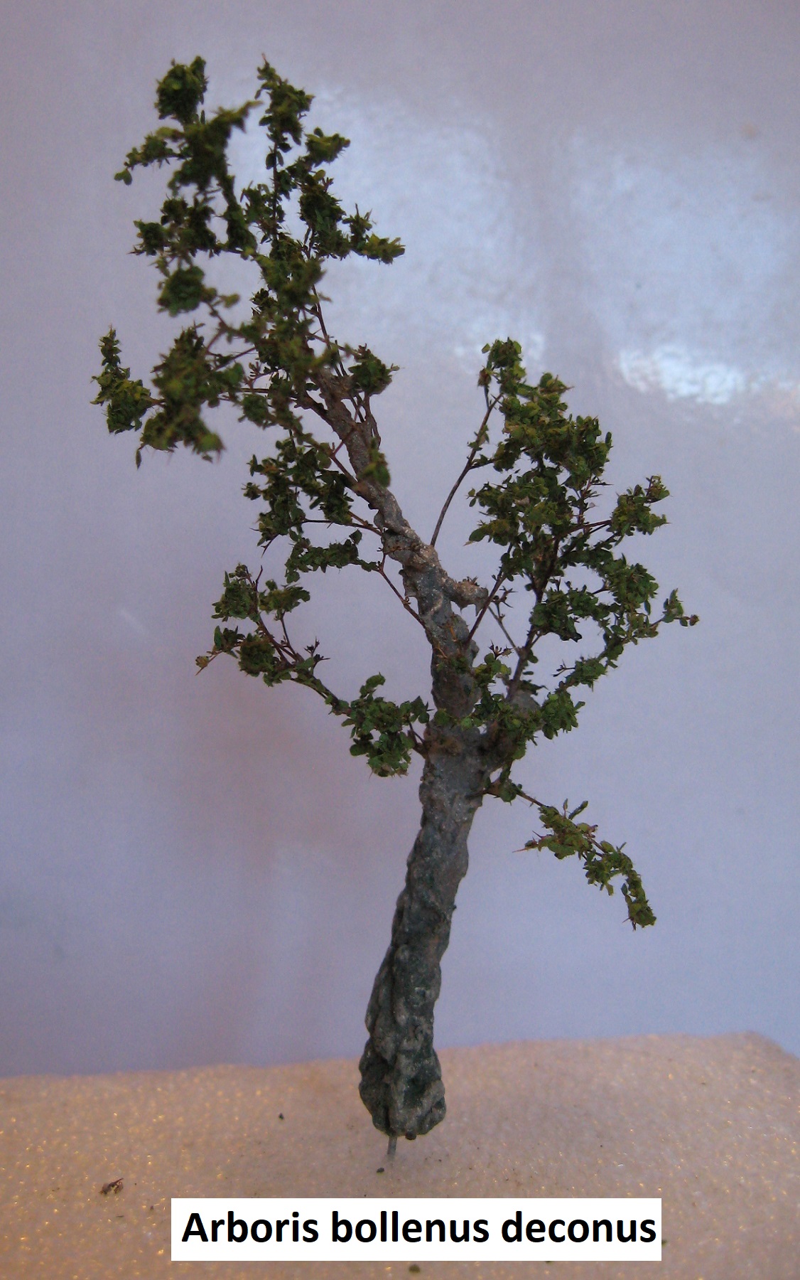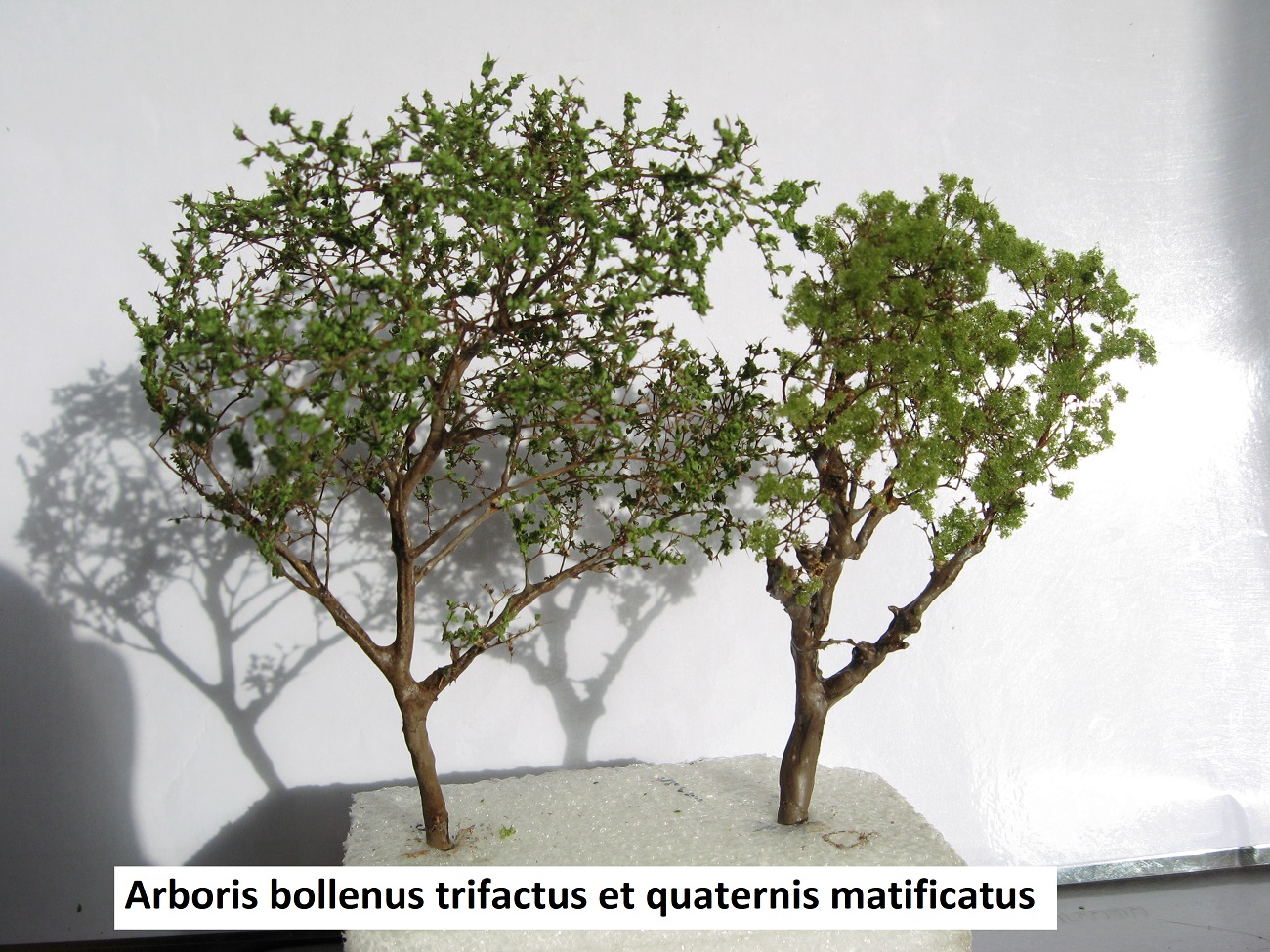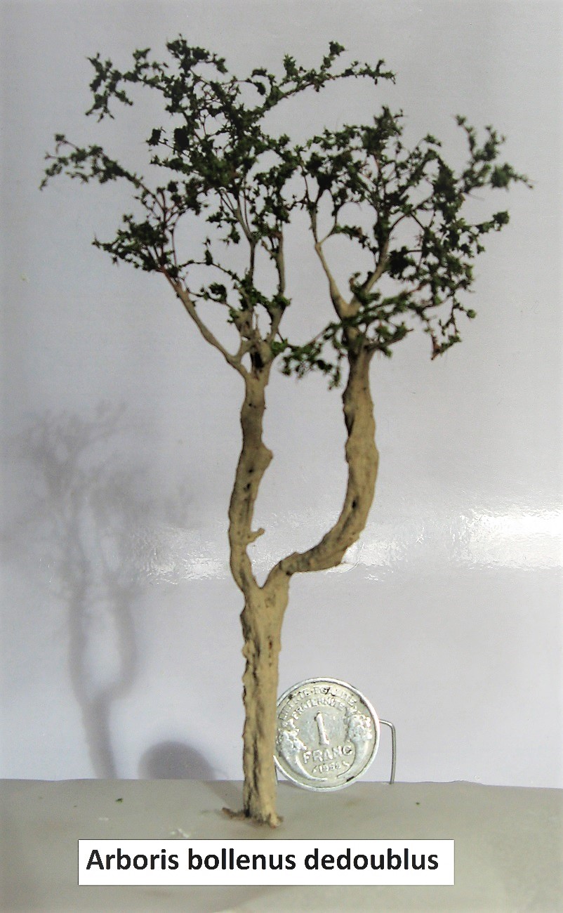 Sur le maximus et le dedoublus, j'ai remplacé la pâte à papier par de petits morceaux de ficelle (à liasser, souvenir de mon passé postal) trempés dans le mélange (dans ce cas, avec du blanc, la pâte à papier n'est plus là)et positionnés sur le tronc jusqu'aux branches maitresses.