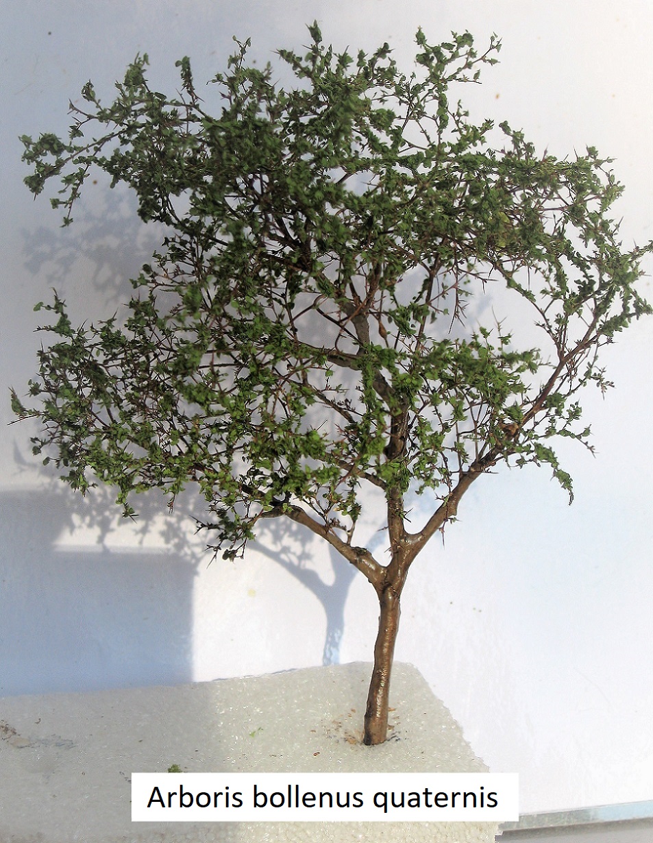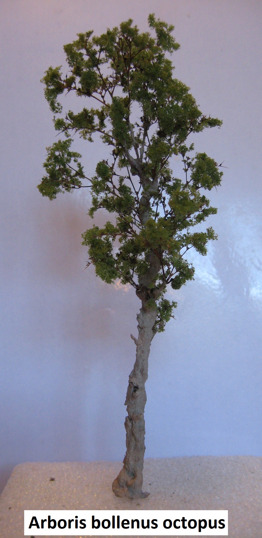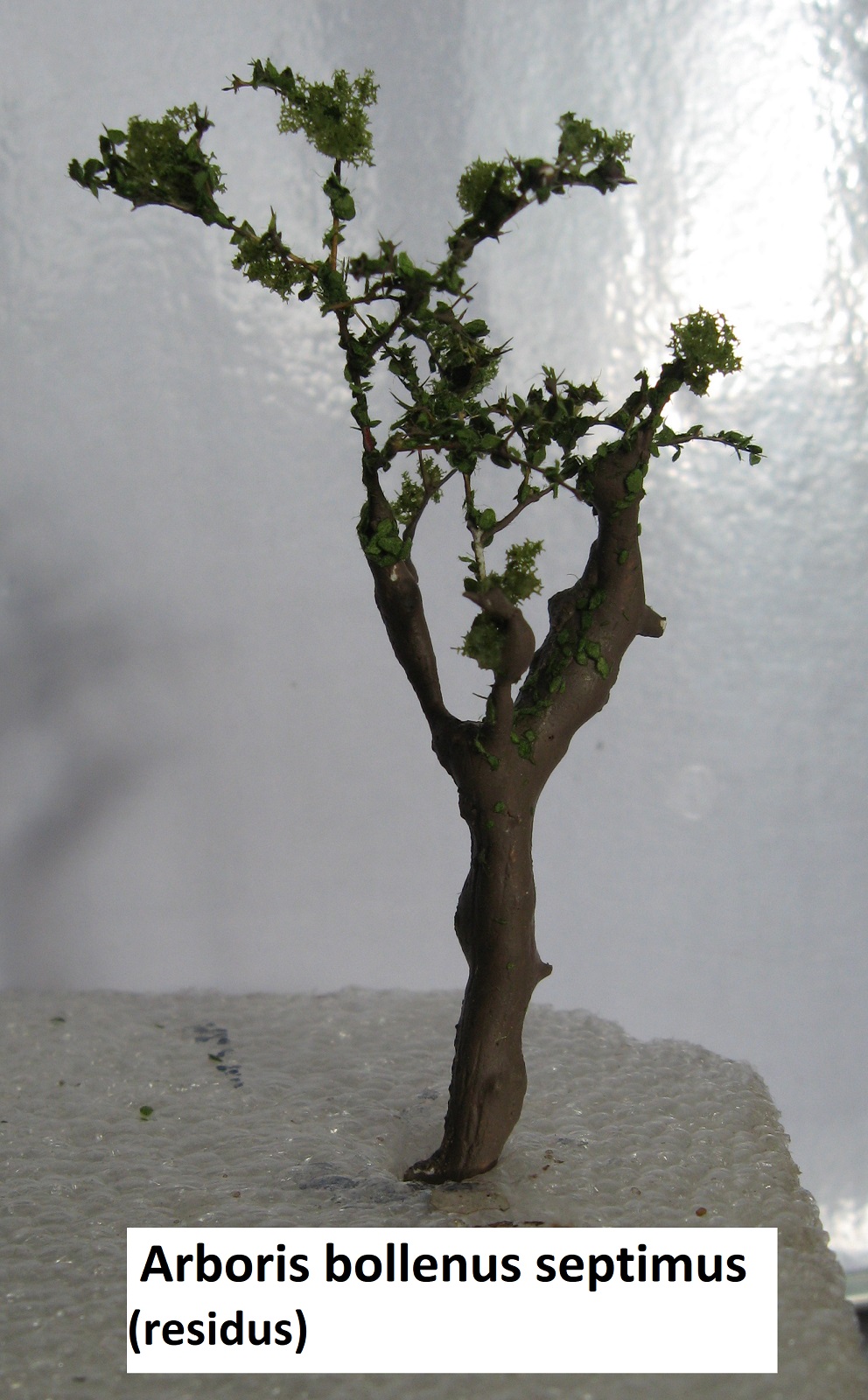 Sur le maximus et le dedoublus, j'ai remplacé la pâte à papier par de petits morceaux de ficelle (à liasser, souvenir de mon passé postal) trempés dans le mélange (dans ce cas, avec du blanc, la pâte à papier n'est plus là)et positionnés sur le tronc jusqu'aux branches maitresses.