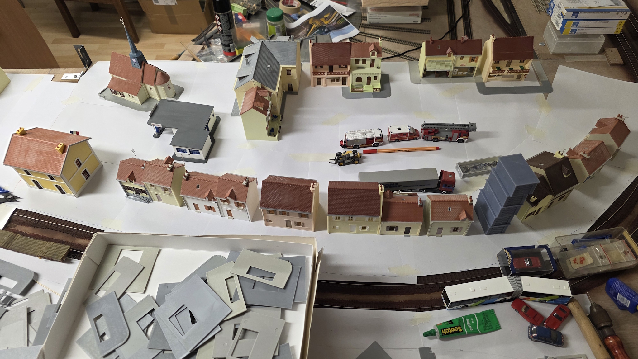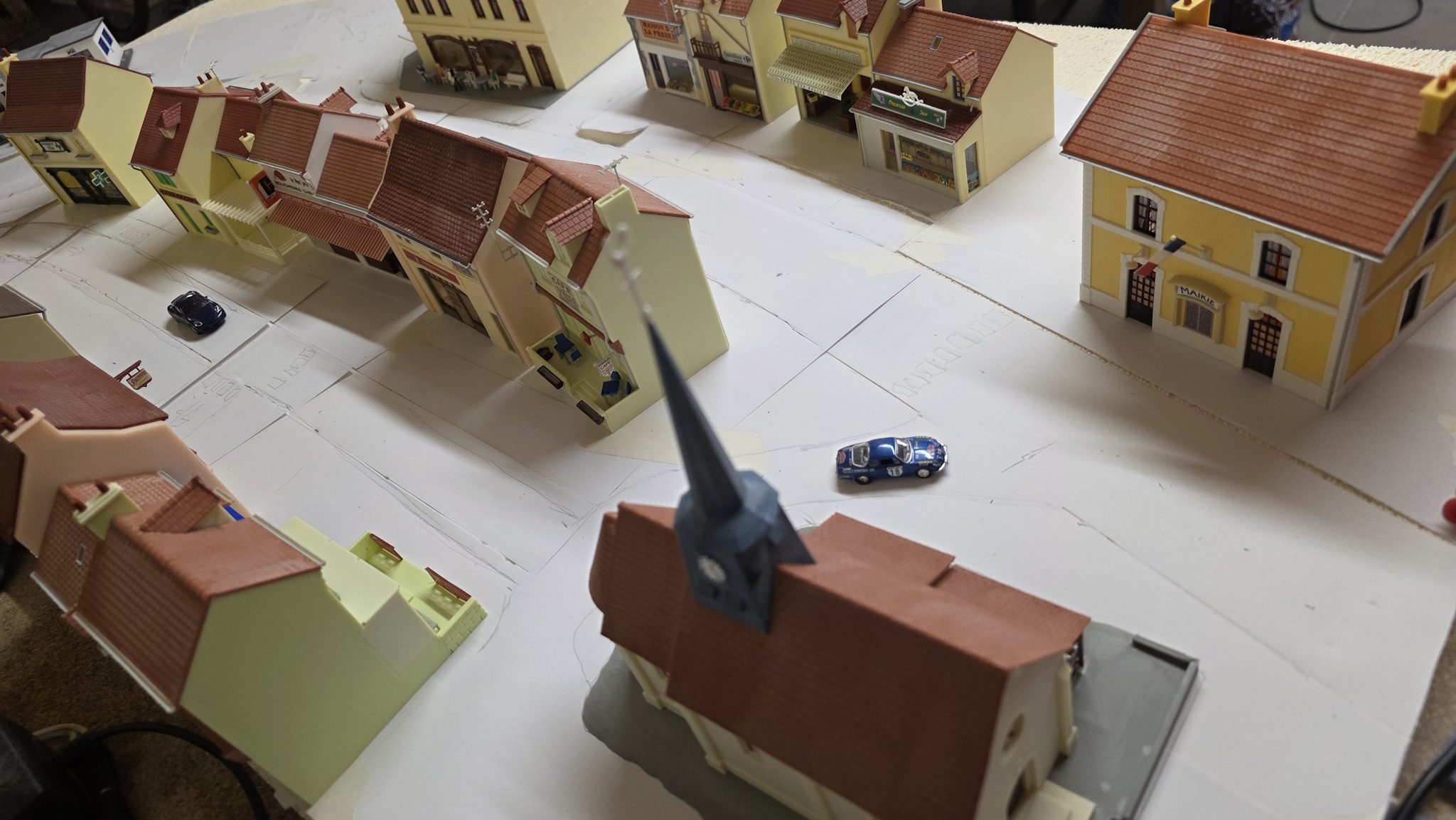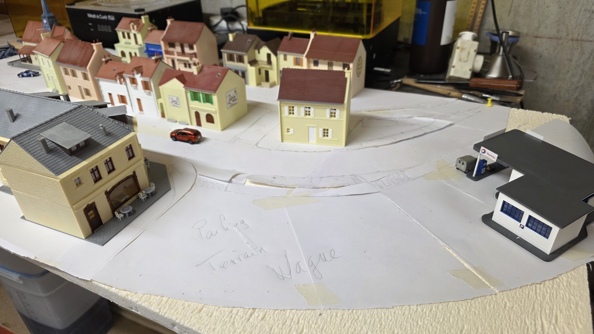 Et j'essaye différentes configurations pour voir se qui pourrait le mieux aller Je test aussi les trottoirs MKD, la encore c'est pour aller plus vite si je puis dire mais je ferais peut être avec du carton