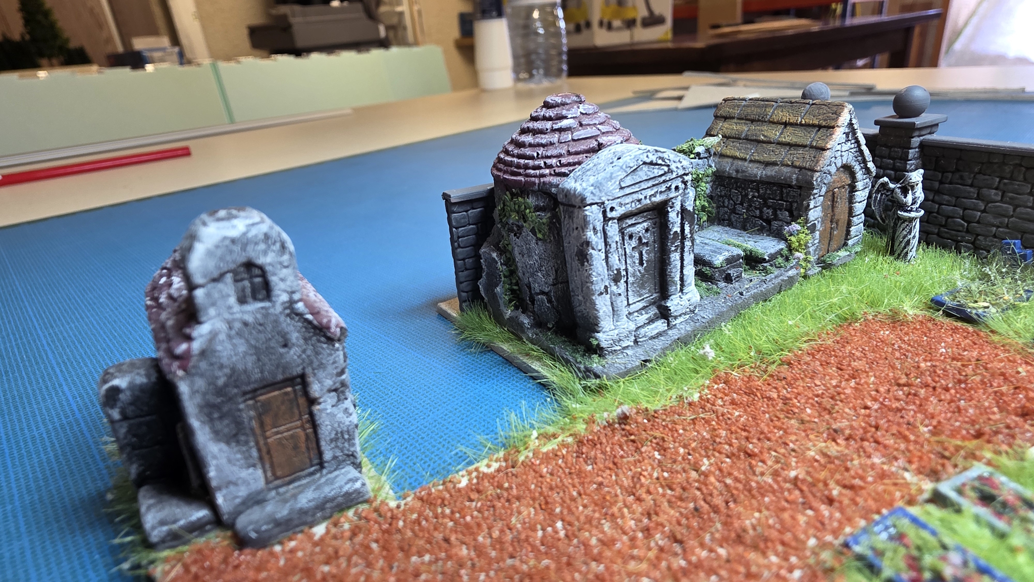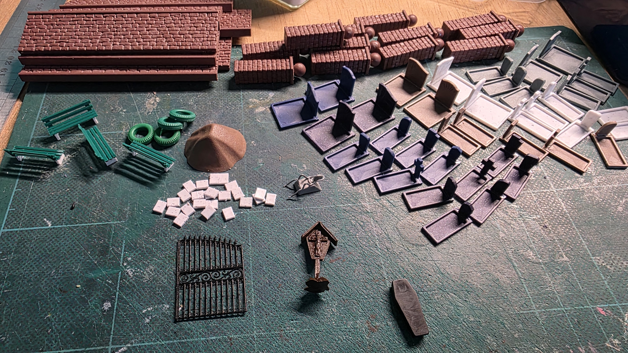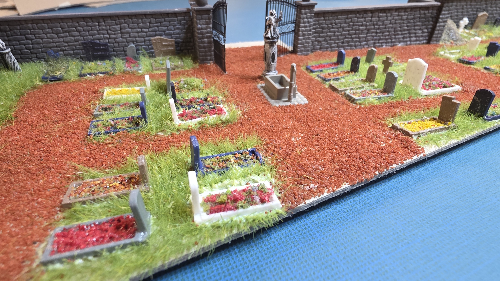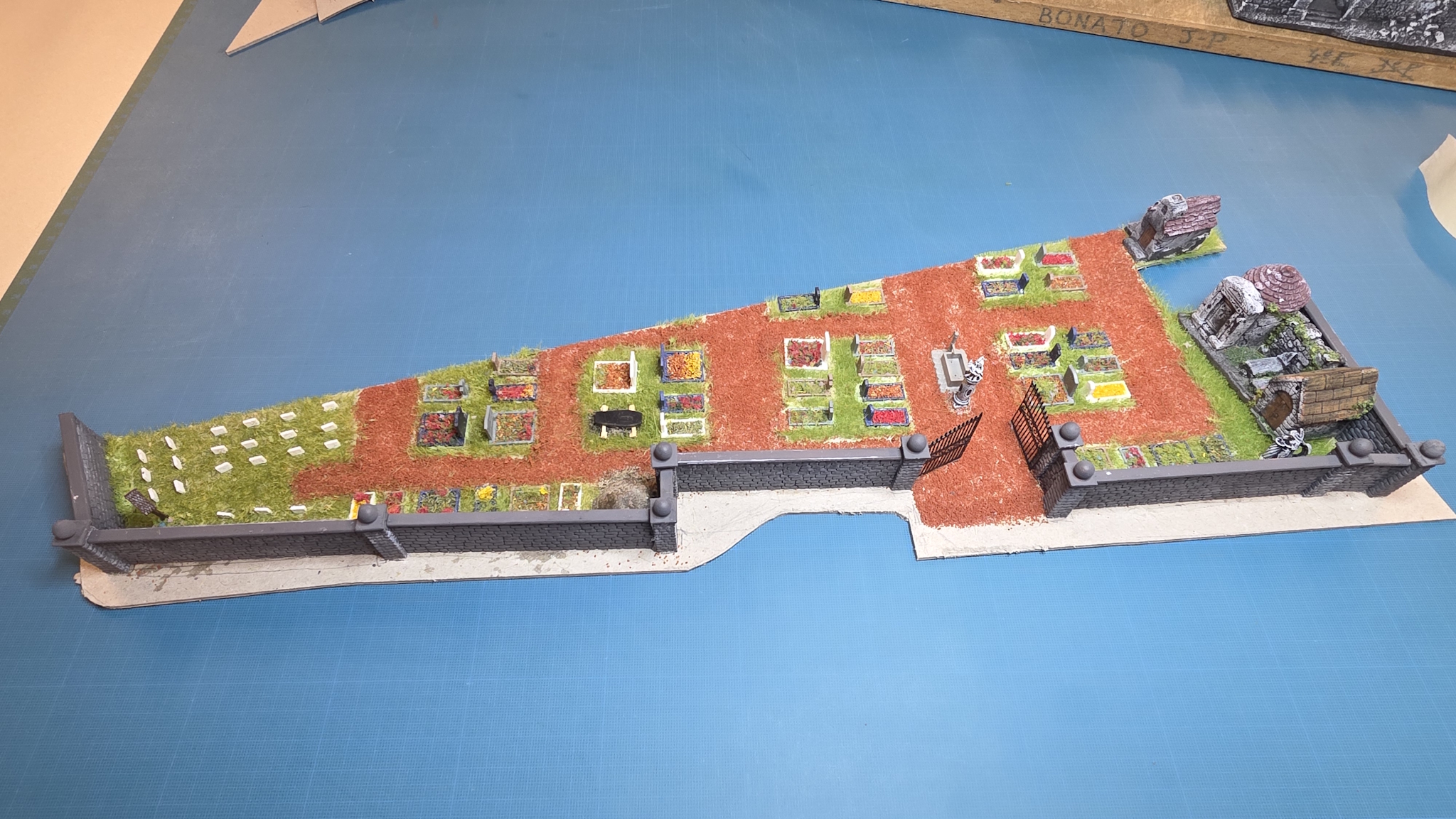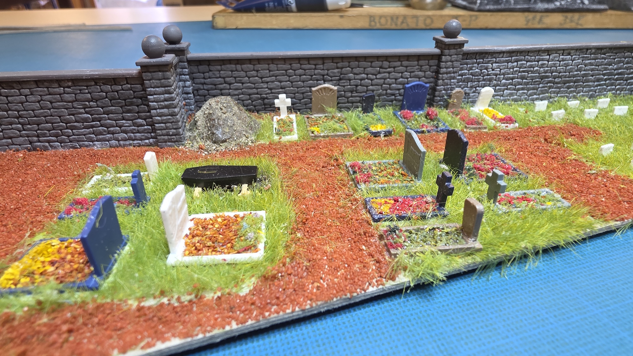 Il attendait enfin la création du cimetière, du coup montage des éléments Puis j'ai charcuté un vieux cimetière Noch qu'au départ je voulais mettre vers La Tour au dessus du tunnel