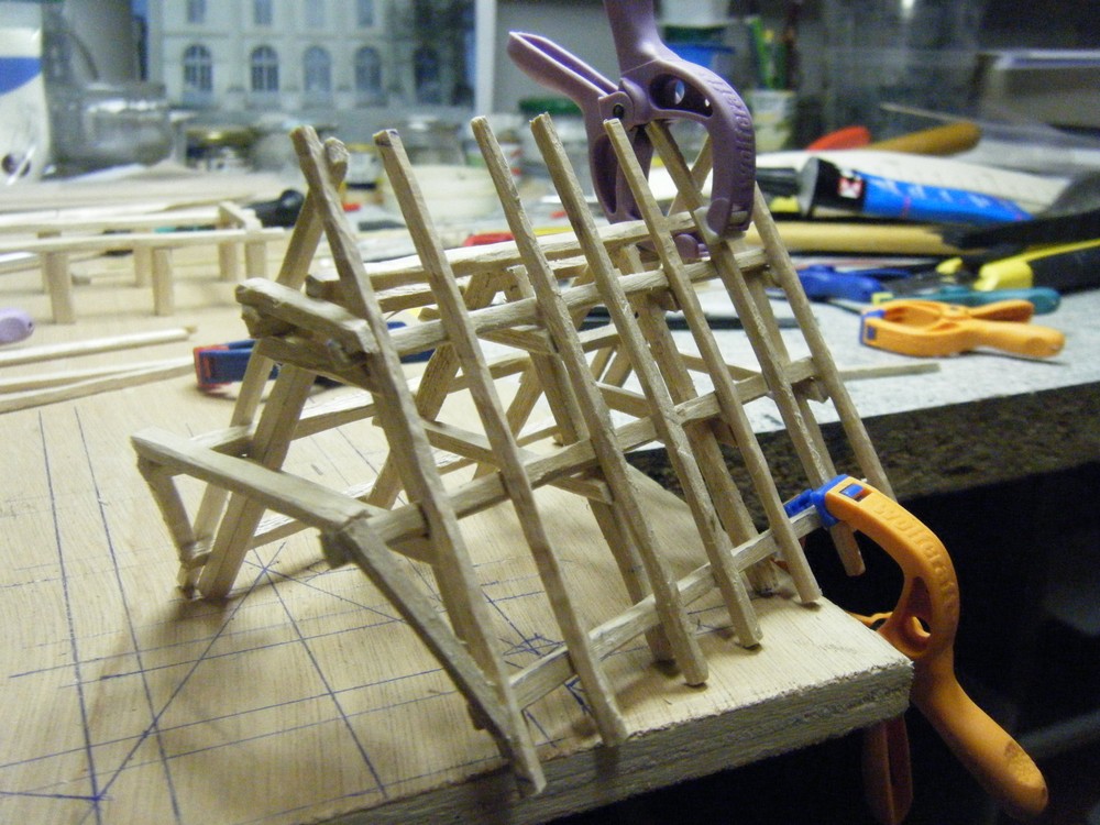 .poutres et chevrons tailler au cutter dans du bois blanc .