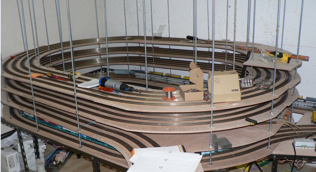 Pendant cette période de confinement, et en attendant la livraison des panneaux d'isolation de mon garage j''ai terminé la première partie des 6 modules (les socles et les supports inférieurs) @Christou: voila la plus grande de mes rames (aujourd'hui bien sur), j'ai fait un montage "à blanc" sur des cartons pour bien visualiser les possibilités A suivre....