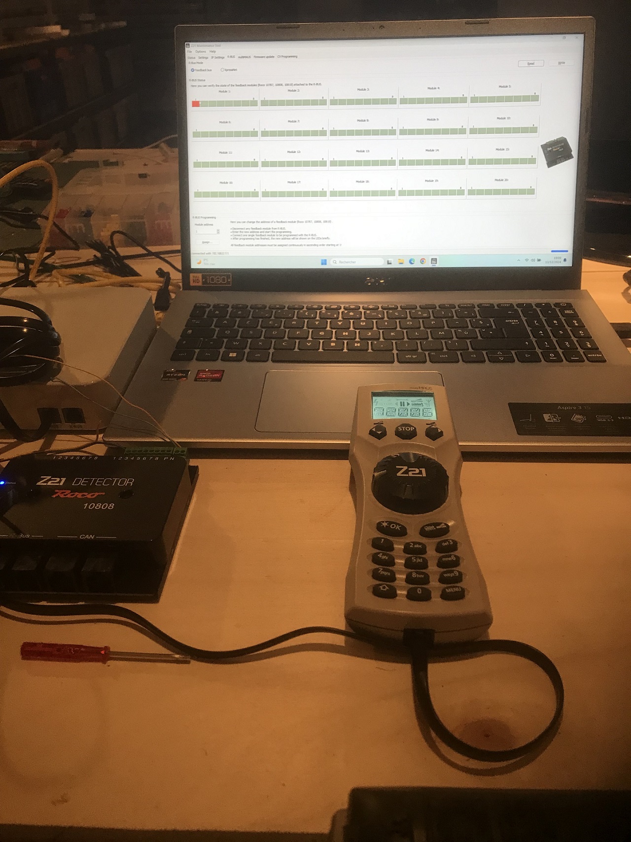 À Railexpo j’ai acheté des prises pour Z21 et également ESU (Lokprogrammer et platine de test de décodeurs) afin de faire des montages volants entre la voie de test et mon bureau avec l’ordinateur sans avoir à modifier les connecteurs (gain de temps indéniable).