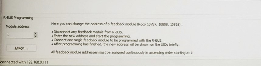 - le bus de rétrosignalisation via un câble reliant les prises R-Bus de la Z21 et de ce module.