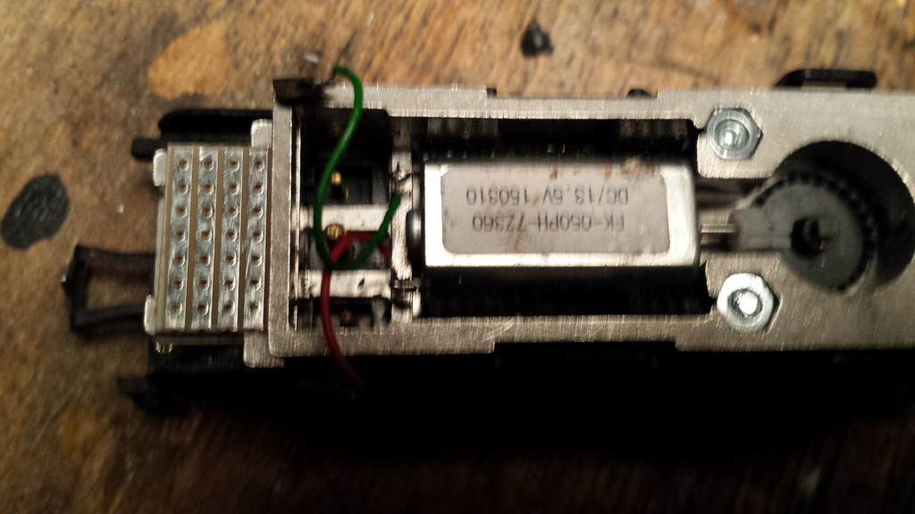Bon aux essais elle ne décolle pas les 9 voitures et un fourgon en rampe de 20. avec 7 c'est bon. Il semble que le tender se cabre à l'effort. l'iprod répond mal au courant pulsé avec des saccades n'influençant pas sur le ralenti (comme la 232U et 231C équipées) . Surprise, le moteur est monté d'origine à l'envers: inversion des pôles! Redémontage >:D