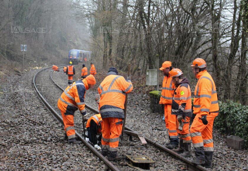Hier matin un peu avant 7 h, un TER quittant Thann à destination de Kruth a heurté un gros arbre qui était tombé sur la voie de chemin de fer suite aux fortes rafales de vent. Le choc, survenu à seulement quelques centaines de mètres de l’arrêt Thann Saint-Jacques, n’a pas été trop violent pour les quelques passagers mais le train a tout de même subi d’important dégâts. Les passagers ont été acheminés en taxis vers leur destination, avant que des cars de substitution soient mis en place, aucun train ne pouvant circuler entre Thann et Kruth.