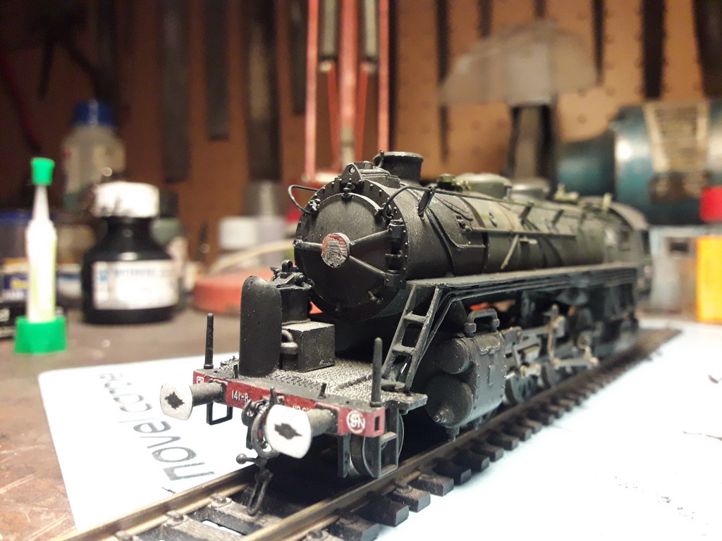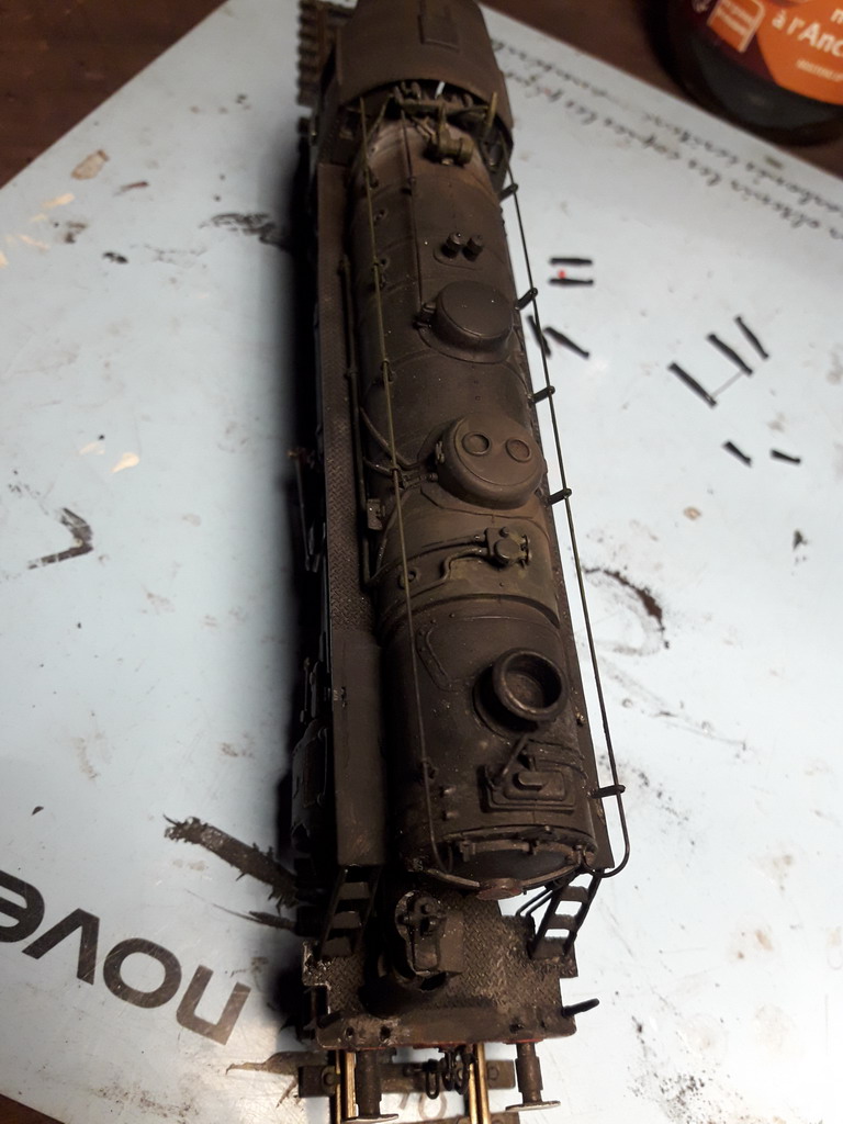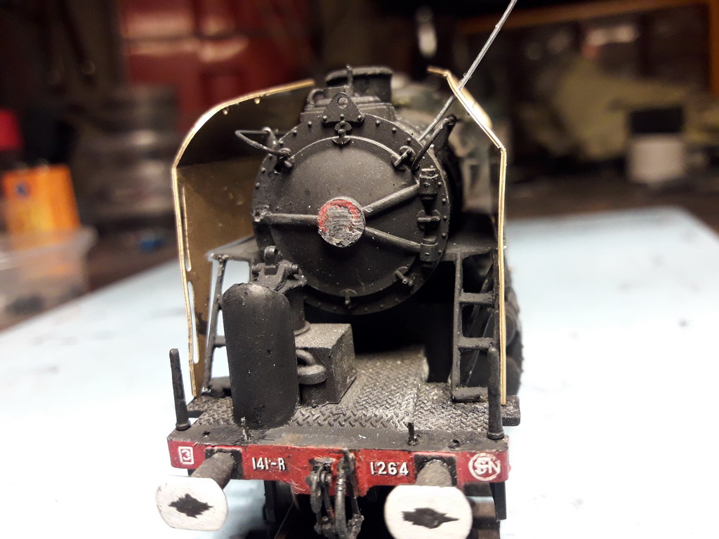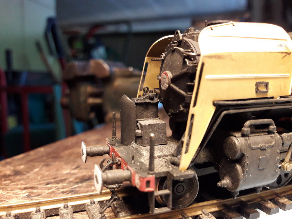 Il y a une grosse tubulure qui ne figure pas devant, partant de la boite à fumée et passant à travers le platelage de la traverse avant. Elle se voit de trop. HJ ne l'a pas représenté non plus