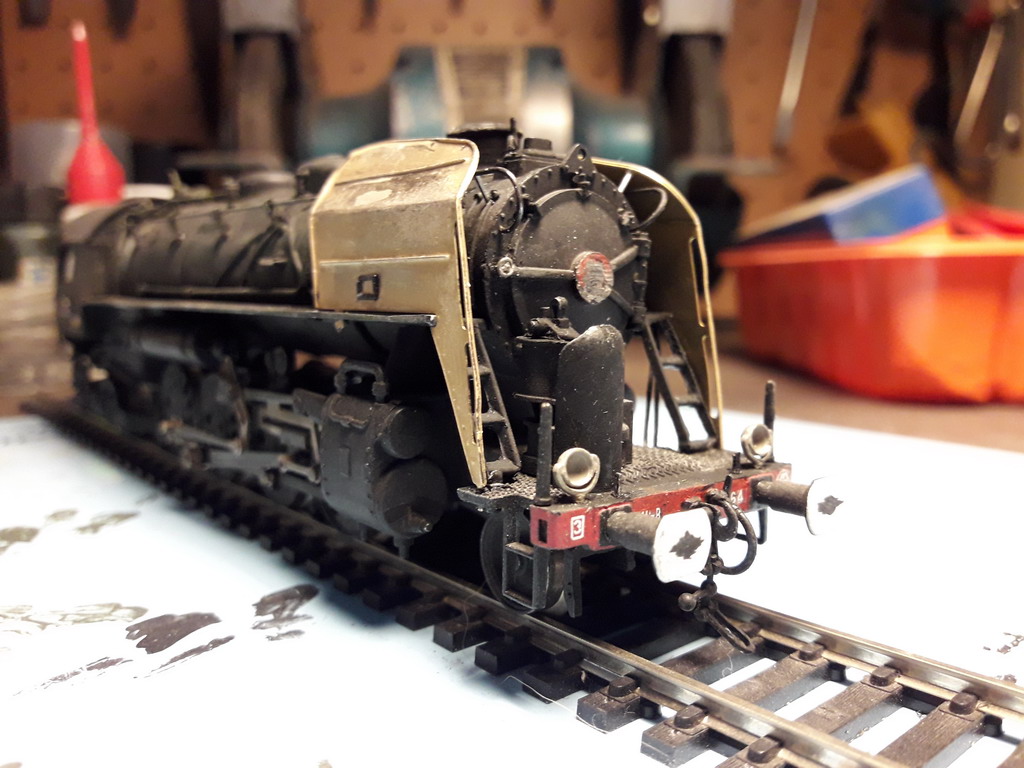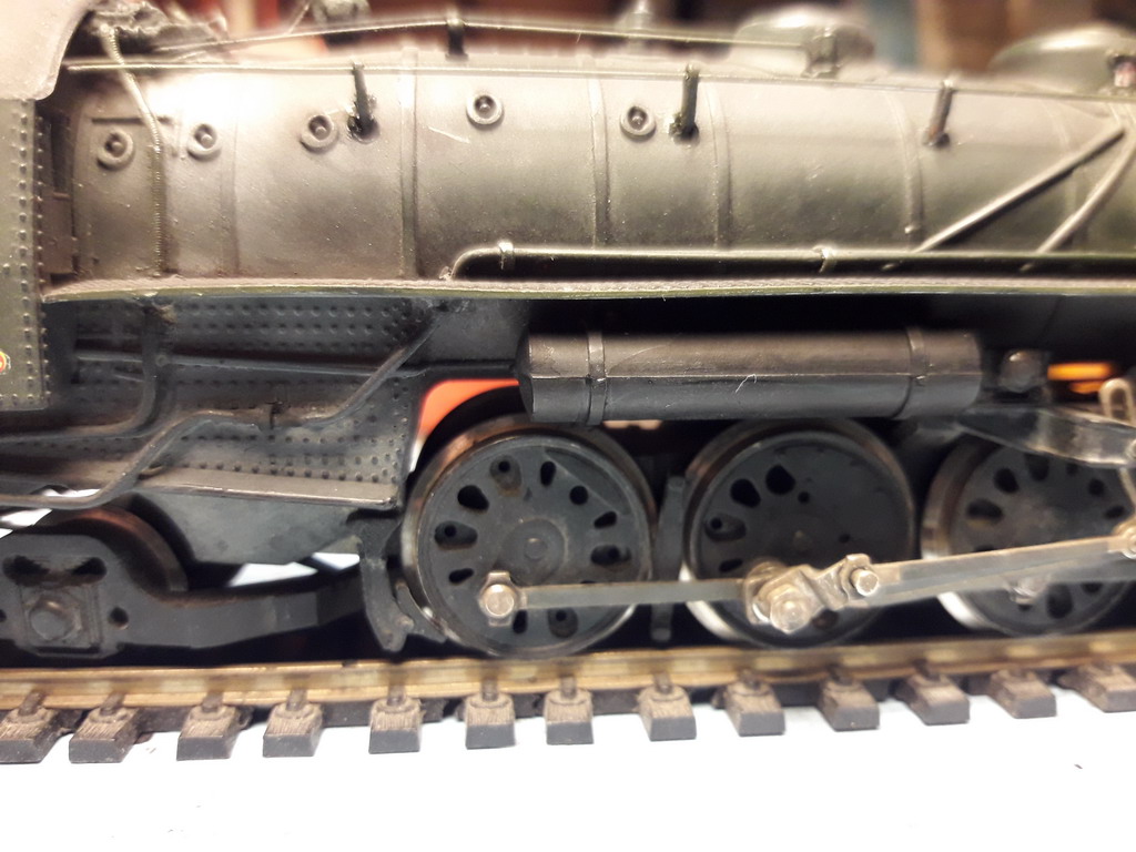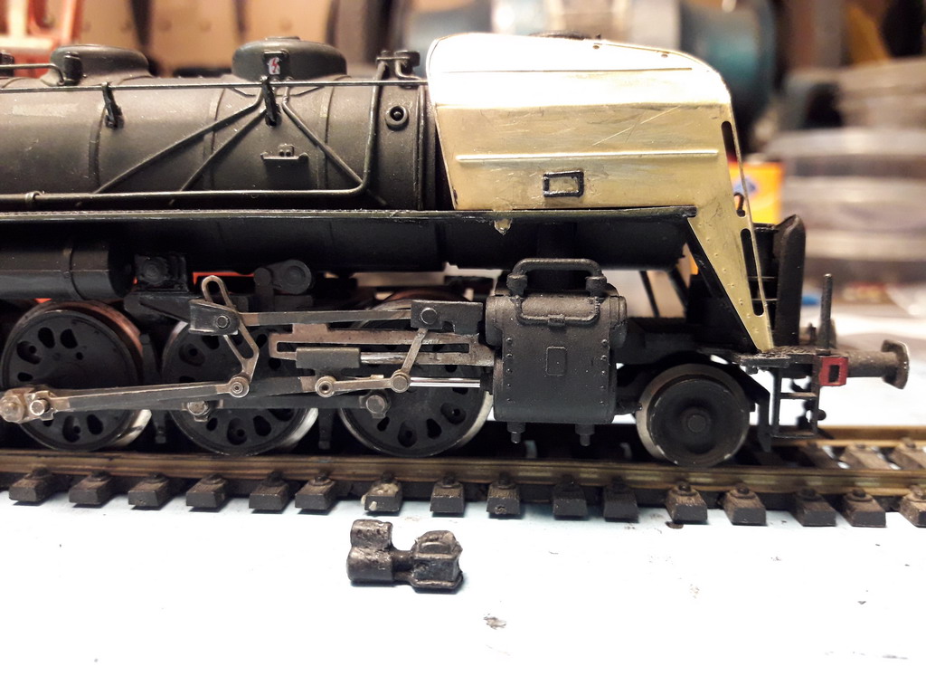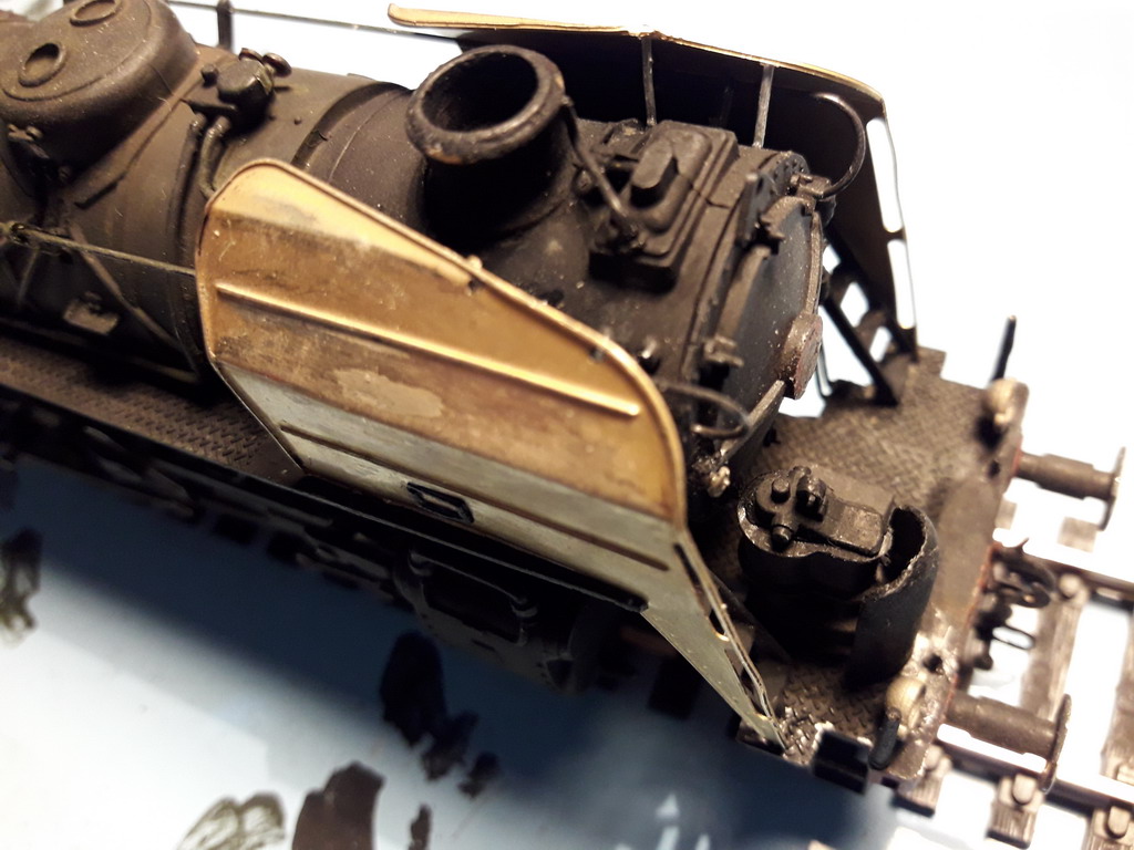 Il y a une grosse tubulure qui ne figure pas devant, partant de la boite à fumée et passant à travers le platelage de la traverse avant. Elle se voit de trop. HJ ne l'a pas représenté non plus ???