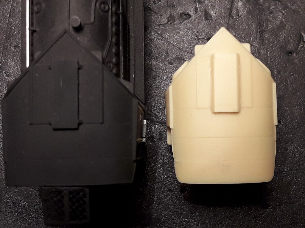 Un ferrovipathe me fait parvenir gracieusement une cabine conforme en résine de 231K Jouef d'Eric SEIBEL. Haaaque je vais m'attaquer une remise à niveau de la K82 Champagnole dans le style de ma 141R plus haut. Ce ne sera pas du REE mais pour ma rame Flèche d'Or cela conviendra. Le même problème que la 141P, je n'ai aucune vue de dessus des ballonnets ACFI. Les ceusses qui ont acquis une K ou G REE peuvent il me faire des photos des tuyauteries?. Je veux faire disparaitre la vis de fixation
