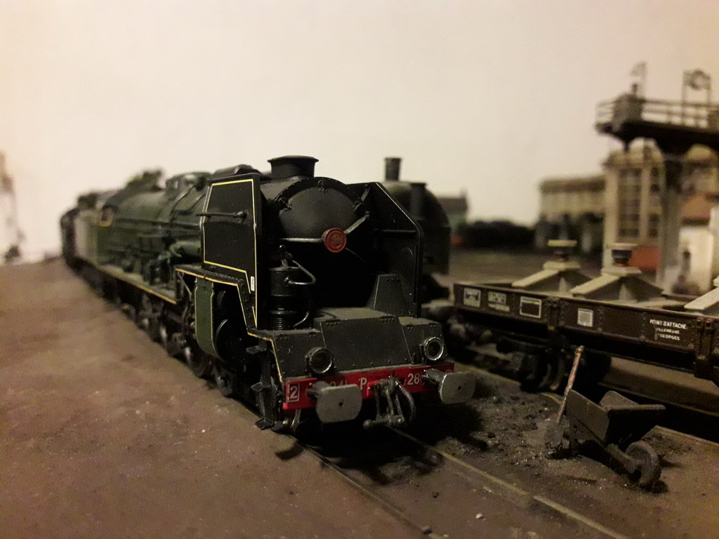 Et ma bête à chagrin, après 6 mois de mise au point (pas à plein temps!) avec un nouveau lest de 135 g, la 241P 28 qui déraille encore ...j'y reviendrai quand elle sera capable de faire le tour du réseau sans problème.