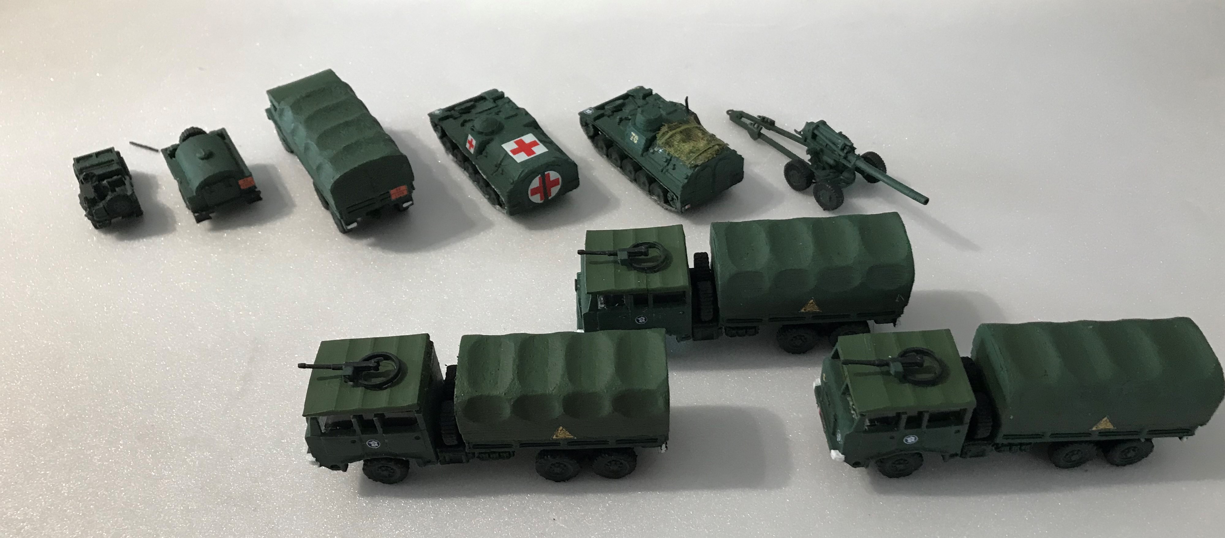 J'ai par contre des camions (ACMAT , GBC, Cargo,...) en kit avec des cabines et des châssis différents (Surtout ACMAT). J'ai aussi des éléments d'artillerie (GBU 15+ 155 Mod 50/63, TRM10000 + Nextrer TRF1, mortier 120, AUF1)