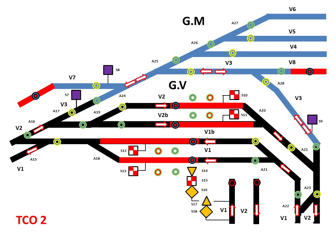 J'ai du revoir le TCO 2. J'avais oublié les commandes de coupure des voies à quai. De plus , la voie de tiroir V8 sera dans le prolongement de la voie 3. Il va y avoir du monde à raccorder.