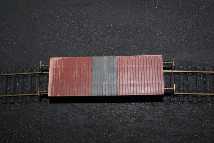 Je vais un peu patiner les wagons pour les salir tout de même et mettre des sortes de calles en allumettes sous les engins